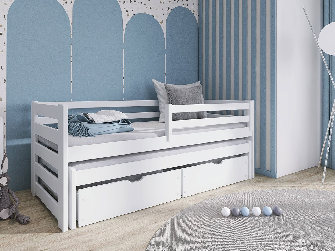 Hľadáte perfektnú posteľ do detskej izby? Vyberte si detskú posteľ Pilksis 80 s barriérou! Je to perfektná voľba pre malé deti. Jej všestranný dizajn doplní rôzne štýly interiéru. Ponúka tiež dve priestranné zásuvky, ideálne na ďalší vankúš, deku alebo dokonca hračky či športové vybavenie, ako sú bedmintonové rakety. Výsuvná posteľ je fantastický nápad. Môžete jednoducho rozšíriť hernú plochu alebo poskytnúť ďalší priestor na spanie pre kamaráta zo školy.