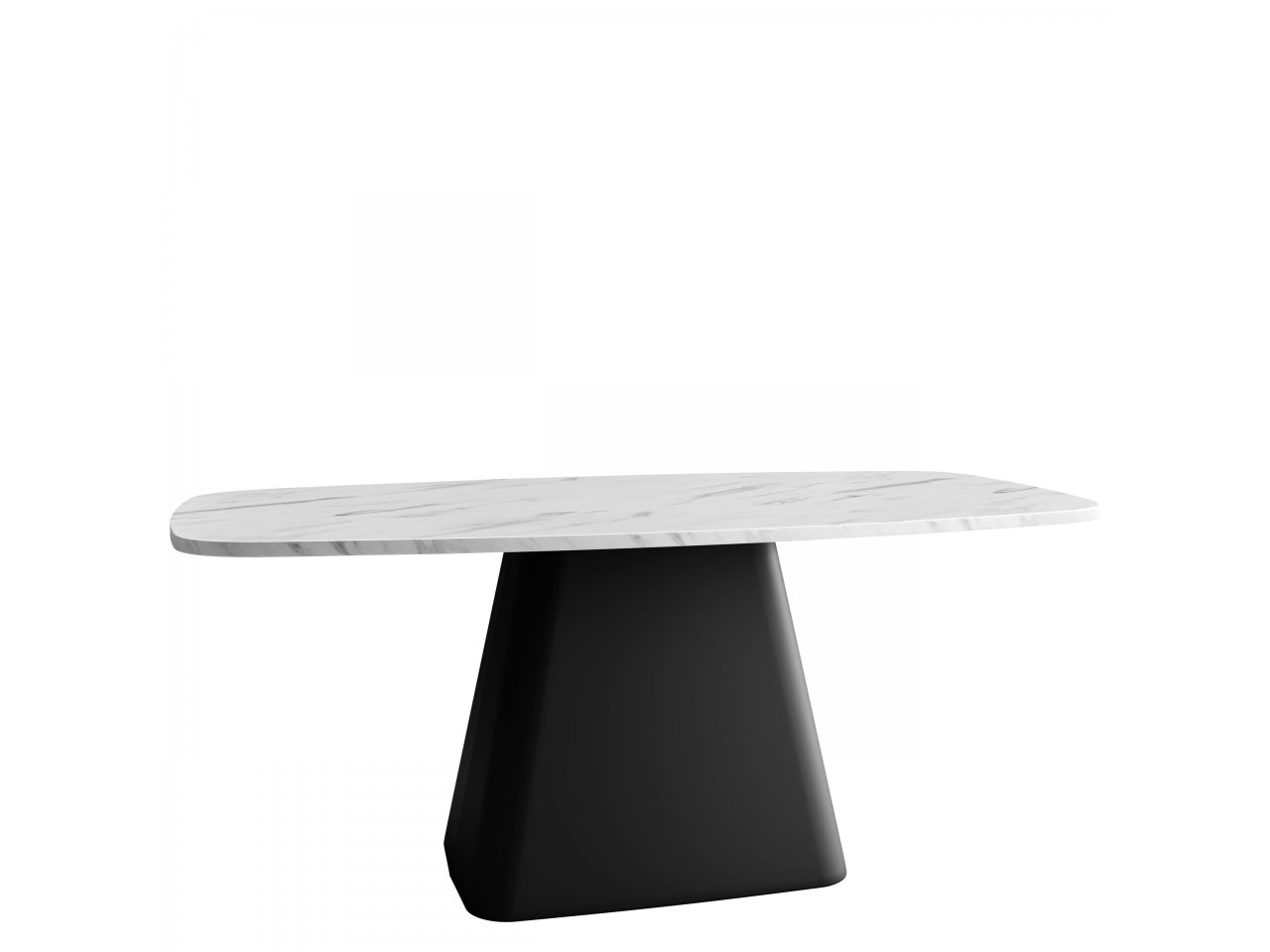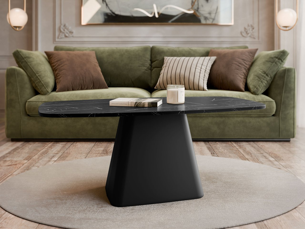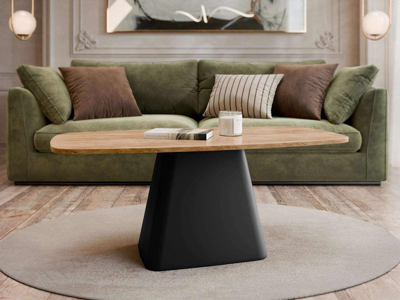 Moderný konferenčný stolík Dinokio sa vyznačuje minimalistickým dizajnom, ktorý dokonale dopĺňa súčasné interiéry. Zaoblená doska kontrastuje s pevnou geometrickou základňou. Tento model je ideálny do obývacích izieb zariadených v modernom, škandinávskom alebo loftovom štýle.