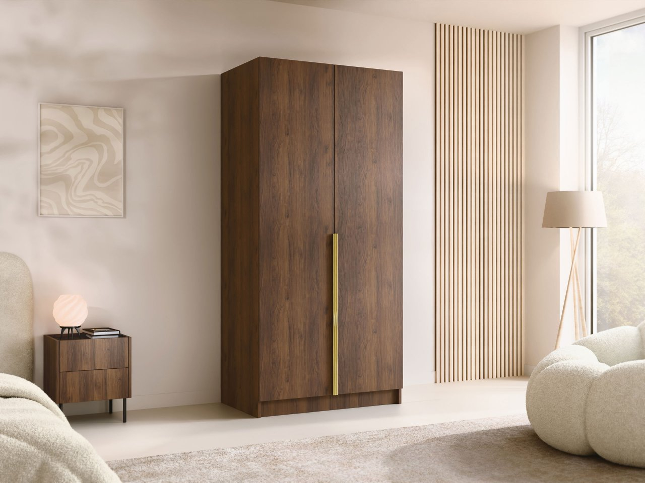 Štýlová 2-dverová šatníková skriňa Smugo I bez zrkadla vyzerá skvele v každom kúte bytu. Vďaka minimalistickému vzhľadu sa nábytok dokonale hodí do interiéru obývačky. Šatníková skriňa dokonale zapadne do zákutia skrine a po umiestnení na chodbu zostane takmer bez povšimnutia.
