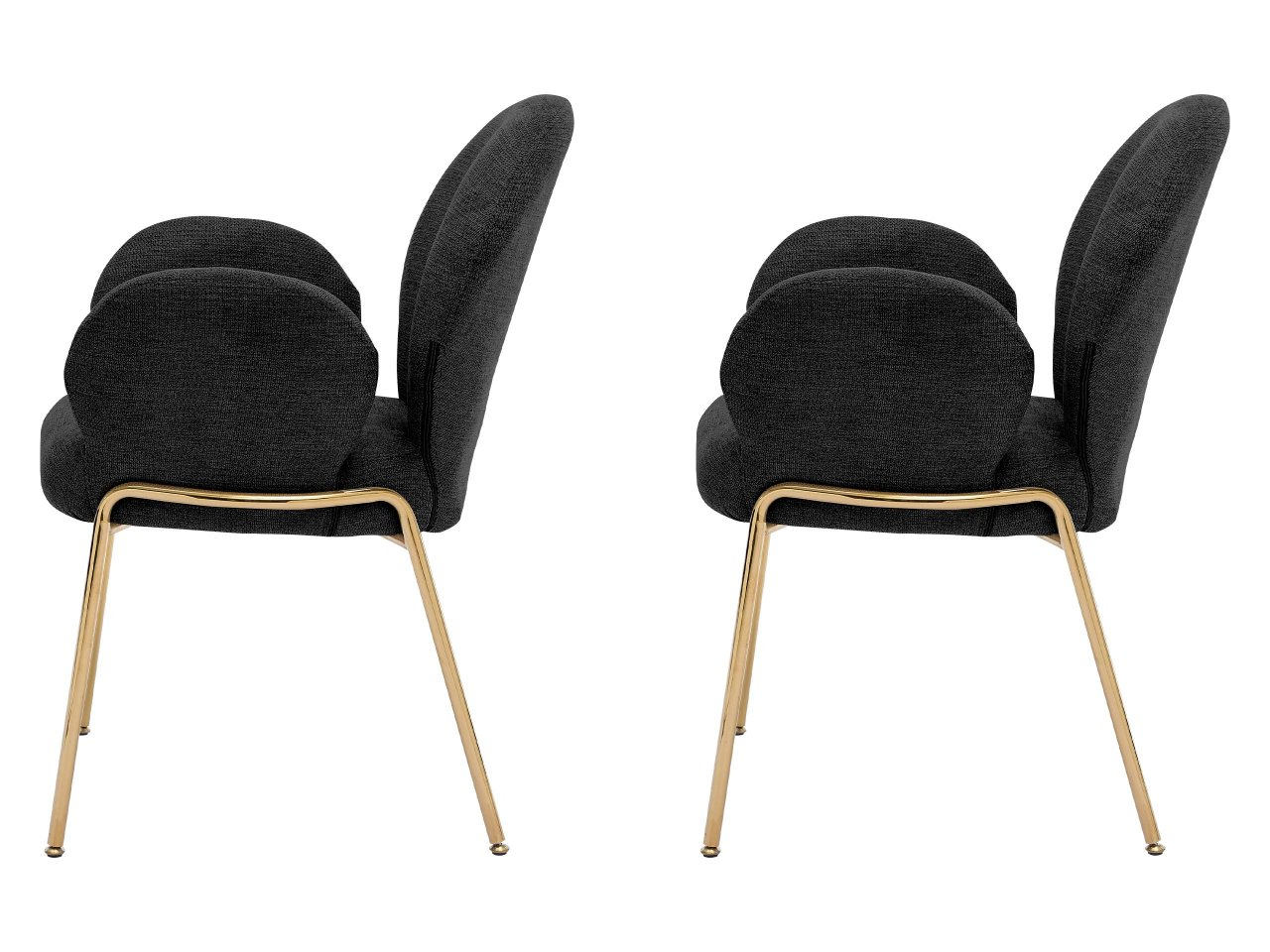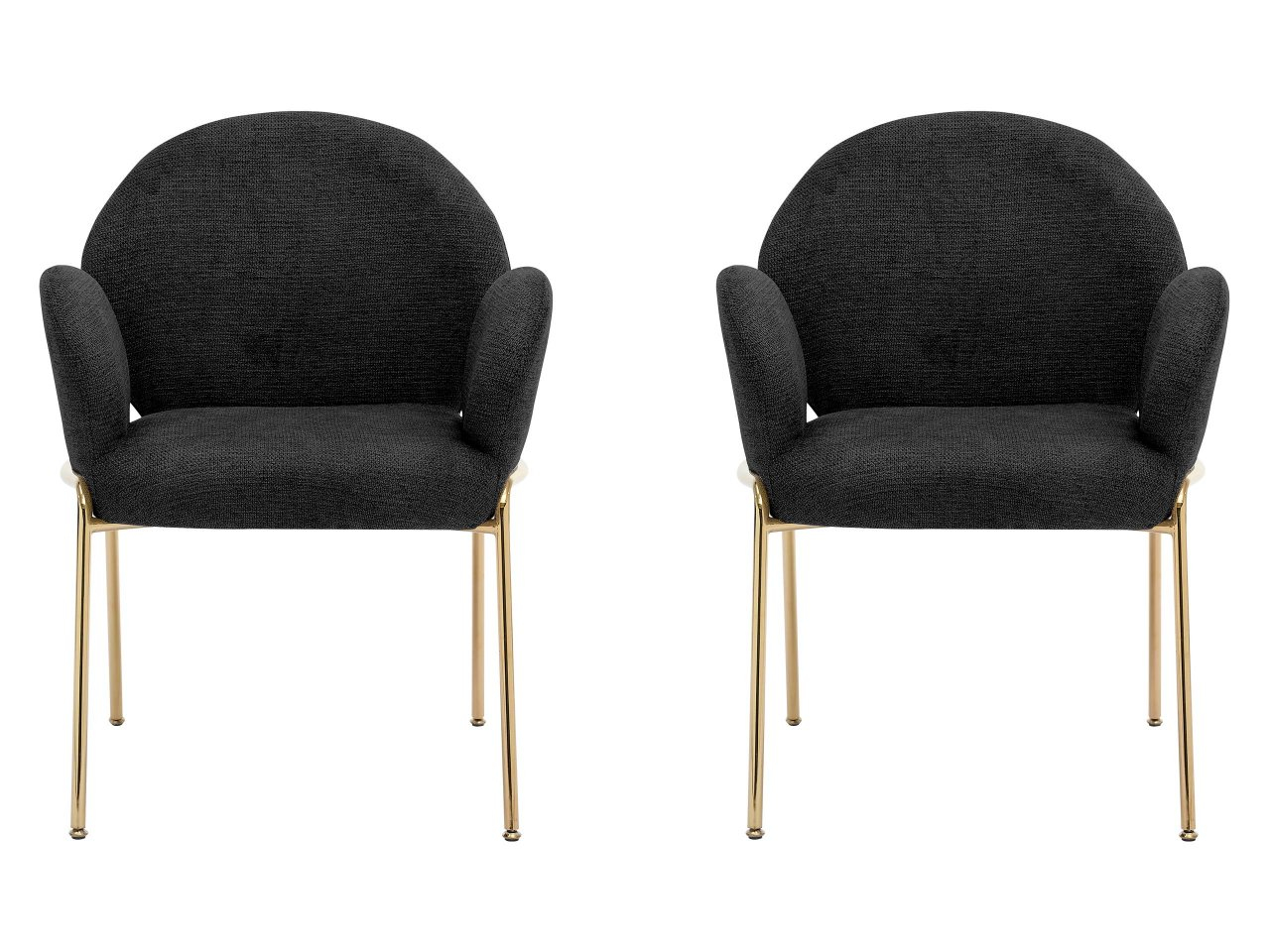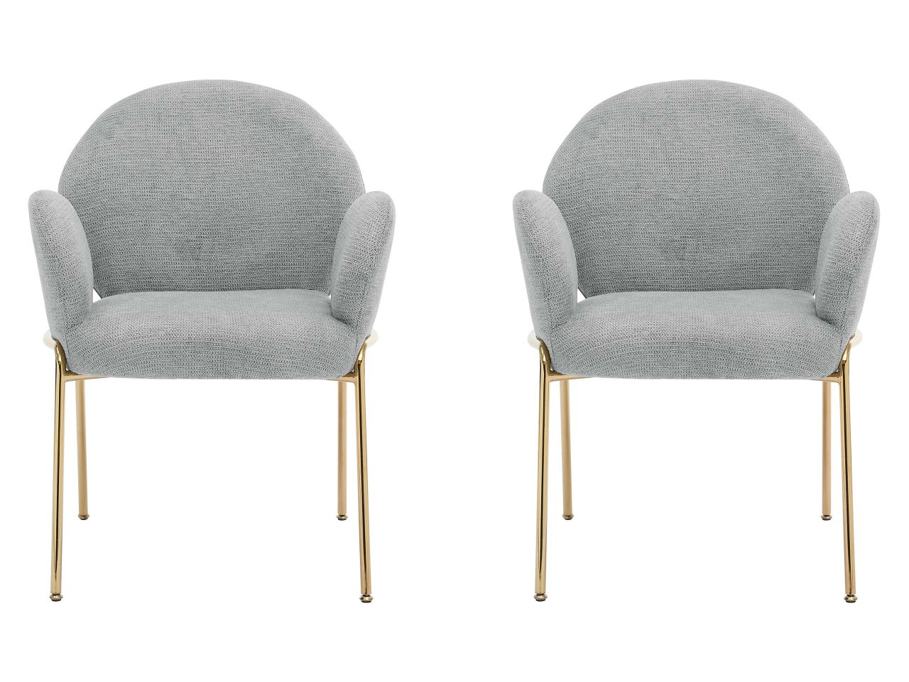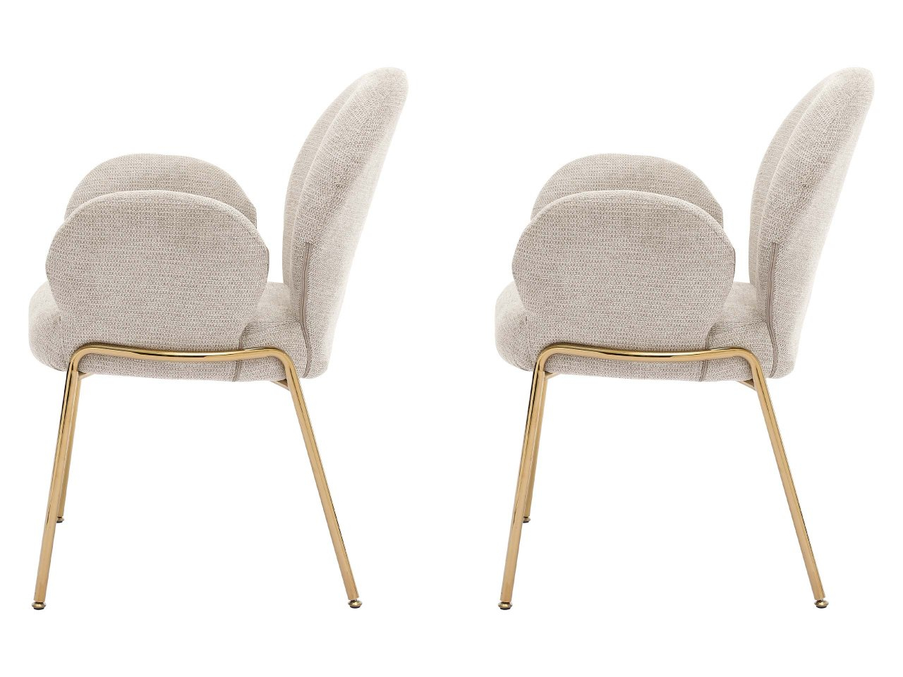 Tvar a proporcie čalúnených stoličiek nepochybne nenápadne umocnia charakter interiéru. Ich moderný štýl je zrejmý zo zaoblených línií a štíhlych kovových nôh zlatej farby.