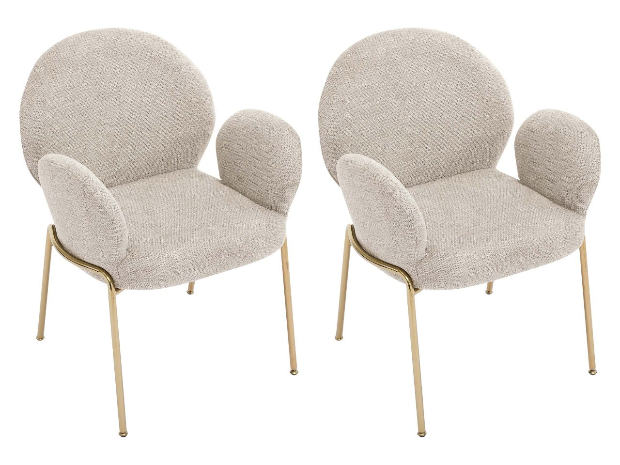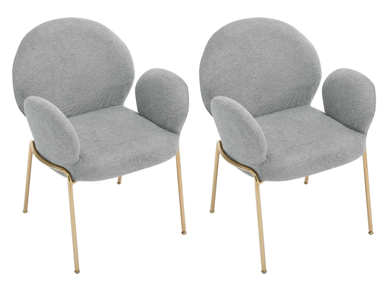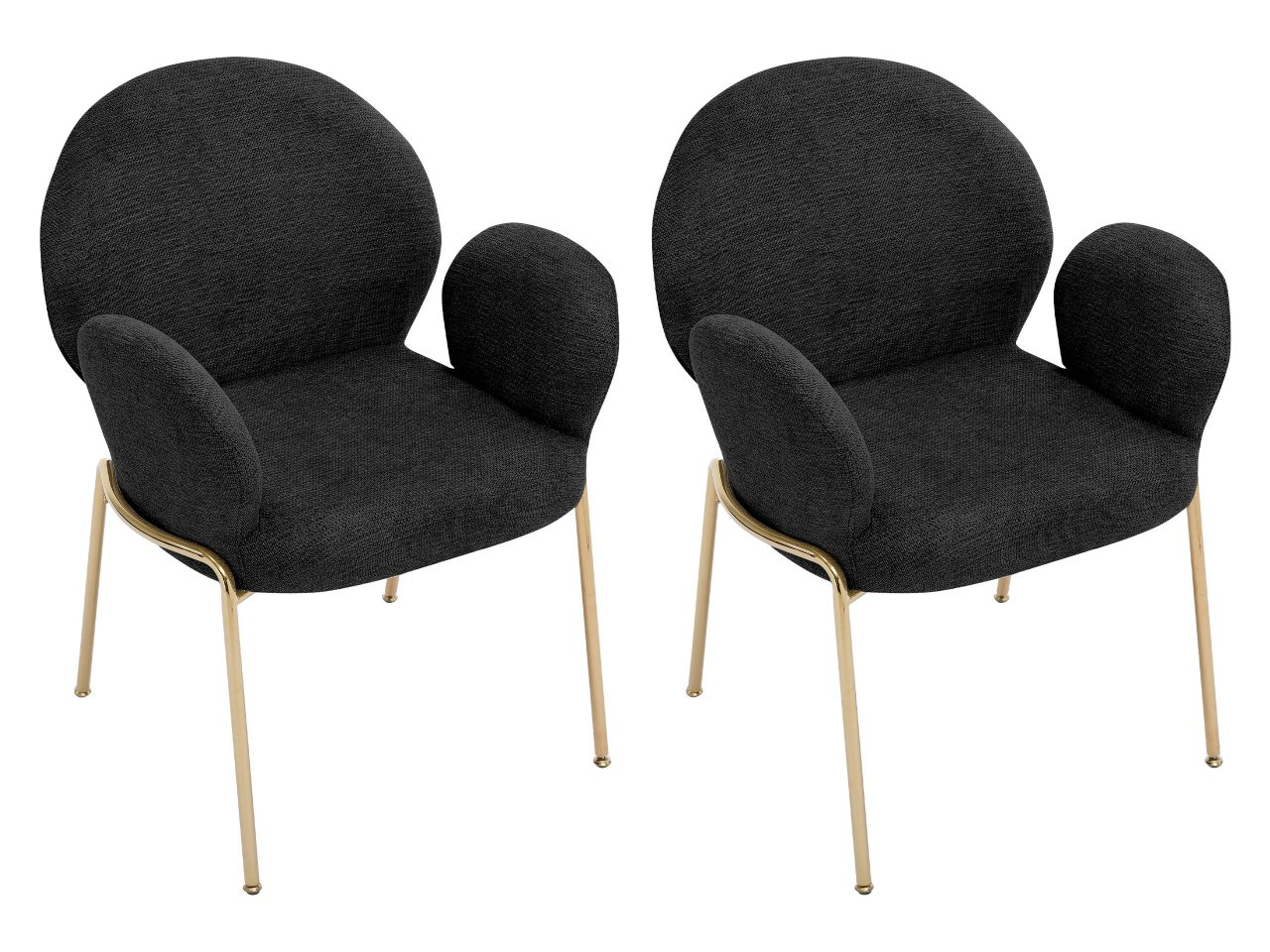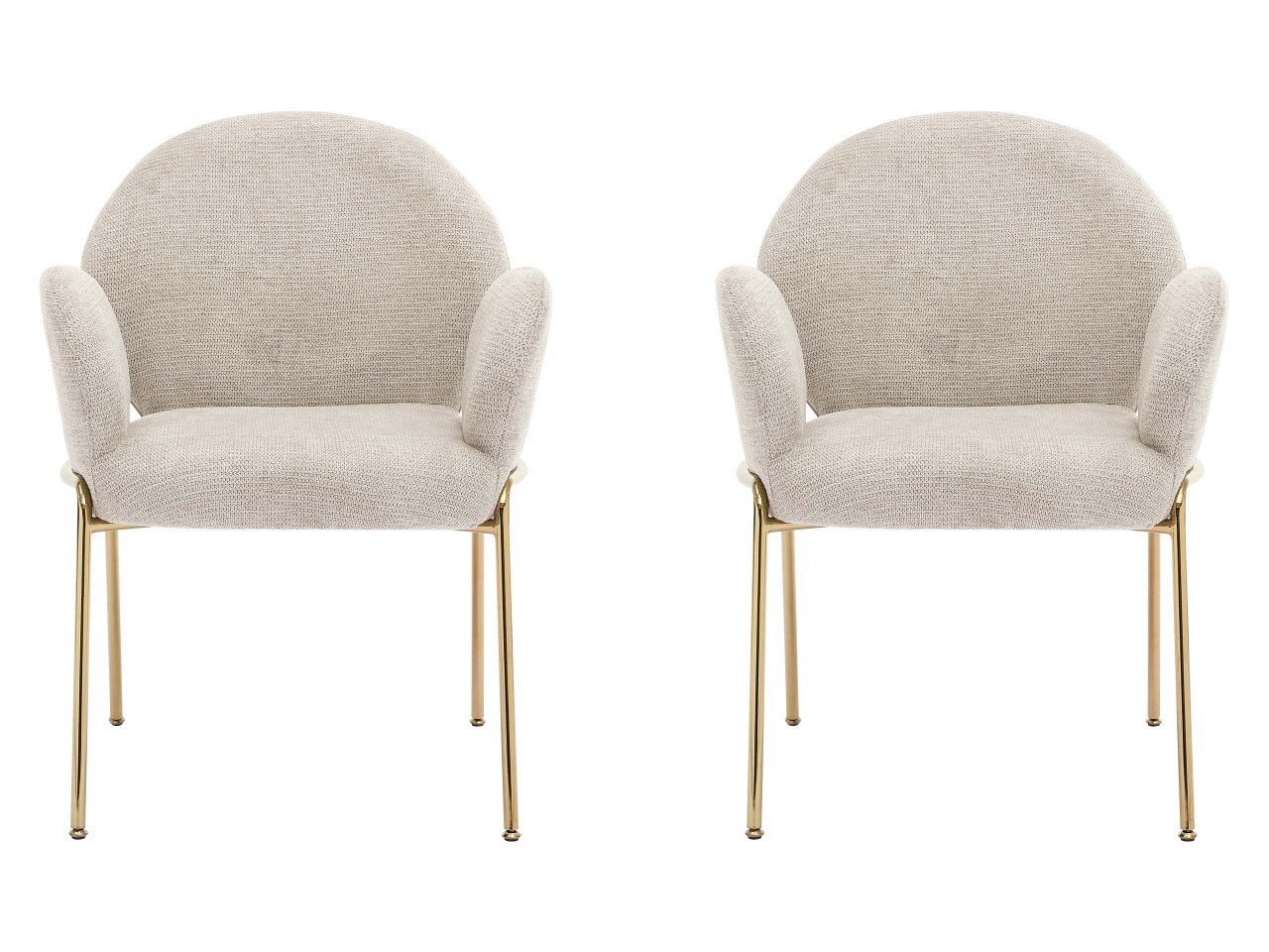 Tvar a proporcie čalúnených stoličiek nepochybne nenápadne umocnia charakter interiéru. Ich moderný štýl je zrejmý zo zaoblených línií a štíhlych kovových nôh zlatej farby.