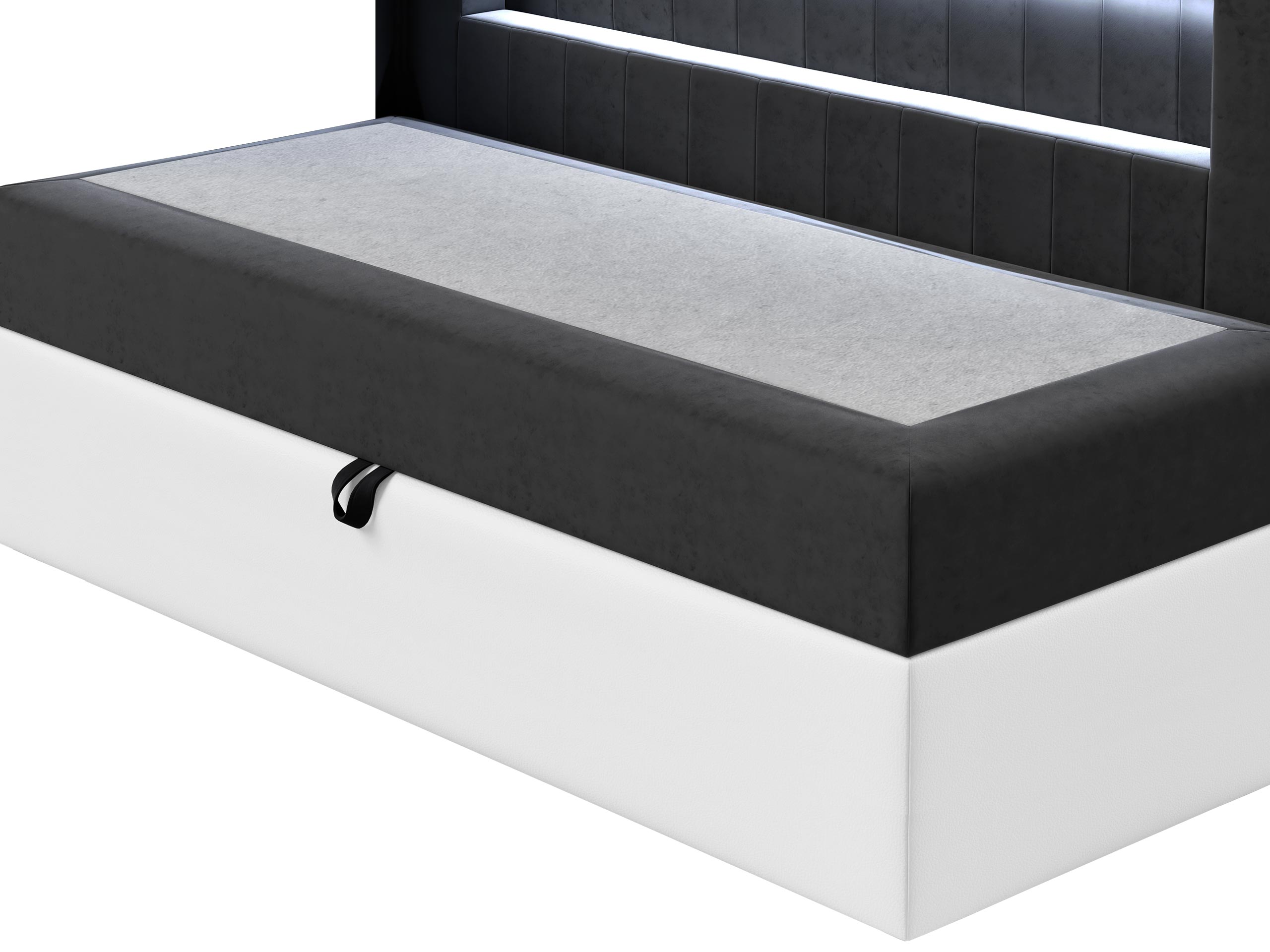 Ozdobným prvkom postele je čalúnená bočnica. Posteľ má aj LED osvetlenie. Okrem pekného vzhľadu plní ešte jednu dôležitú úlohu – chráni steny pred odreninami a nečistotami.