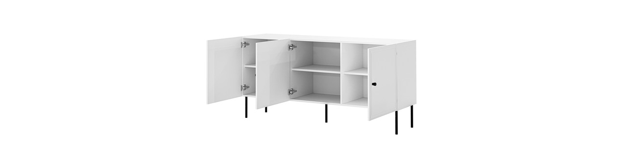 Komoda Gudzup Bis 150 3D na nožičkách dodá vášmu interiéru jemnú eleganciu. Jednoduchosť, ktorá z nábytku vyžaruje, sa dokonale hodí k minimalistickému aranžmánu v modernom klasickom štýle.