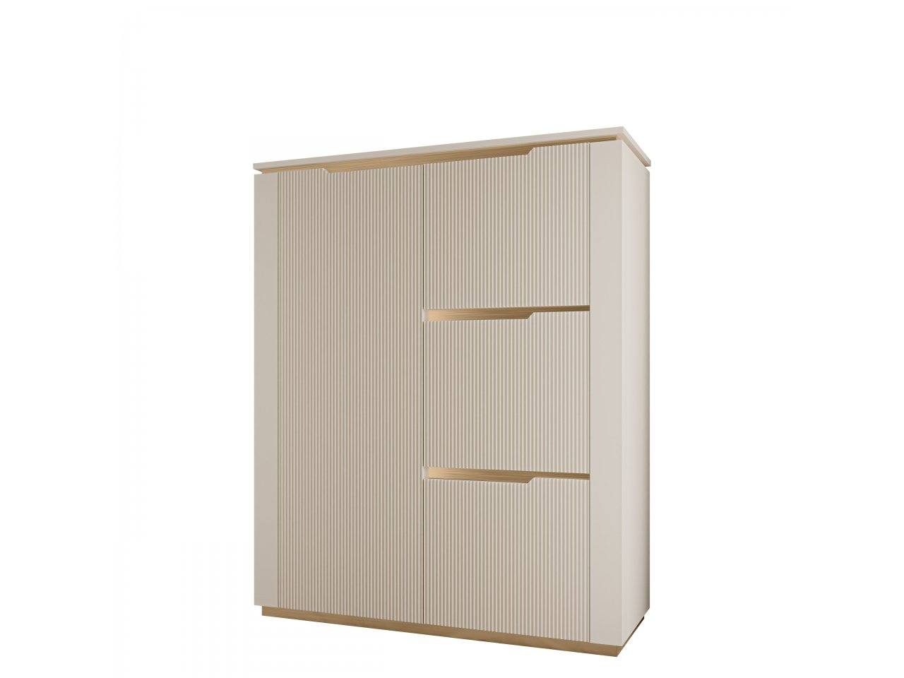 Vysoká komoda Frimgo 4D s frézovanými čelami je elegantný a moderný kus nábytku, ktorý dodá každému interiéru jedinečný charakter. Jej vertikálny tvar zdôrazňuje štýl a ľahkosť, zatiaľ čo starostlivo vyrobené frézované čelá dodávajú jemnú hĺbku. Absenciu tradičných úchytiek nahradil zakrivený otvor, ktorý zdôrazňuje minimalistický dizajn.