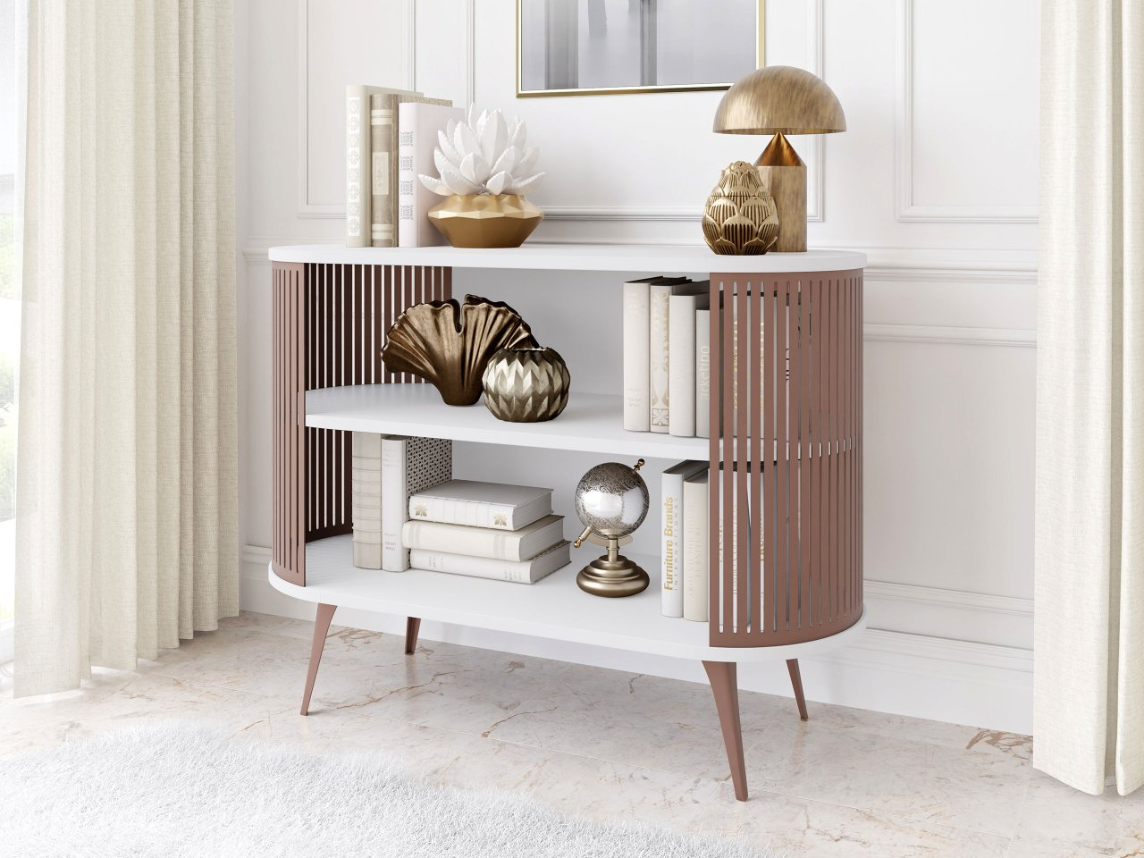 Táto komoda s policami umožňuje pohodlný prístup ku knihám, dekoráciám a suvenírom a zároveň ich krásne vystavuje. Tento model sa perfektne hodí do obývačky, spálne, chodby alebo kancelárie a dodá mu štýl a šarm.