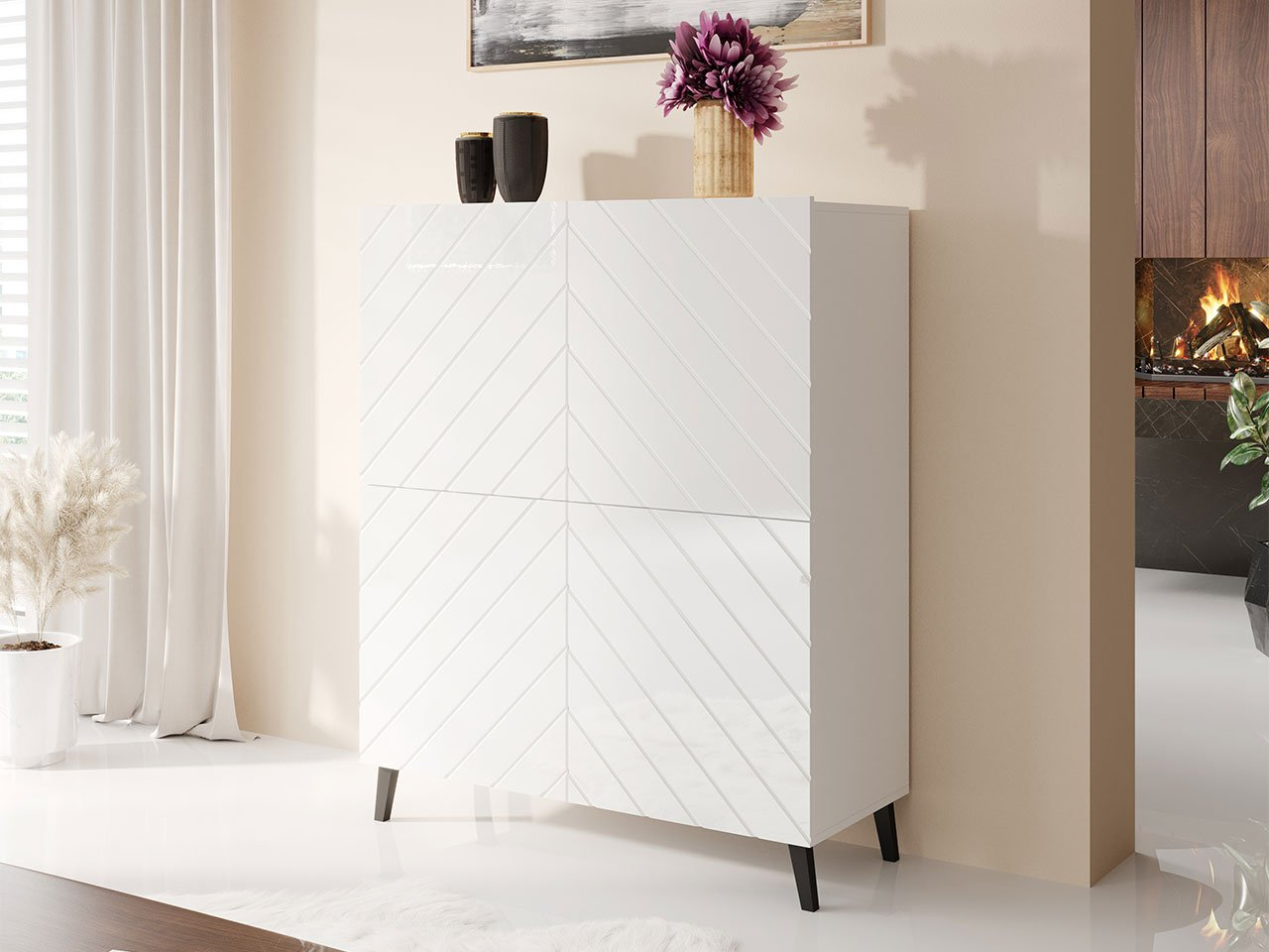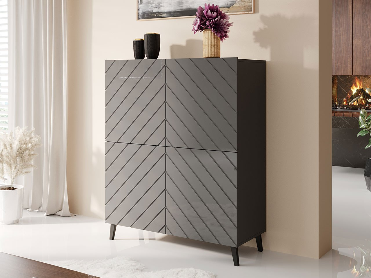 Elegantná komoda do obývačky Zitok 100 cm je módnym doplnkom na zariadenie vášho obytného priestoru. Najobľúbenejšie farby, štýlovo frézované čelá a výrazné nohy sú len niektoré z jej charakteristických vlastností. Eleganciu tu podčiarkuje bezúchytkový systém otvárania.