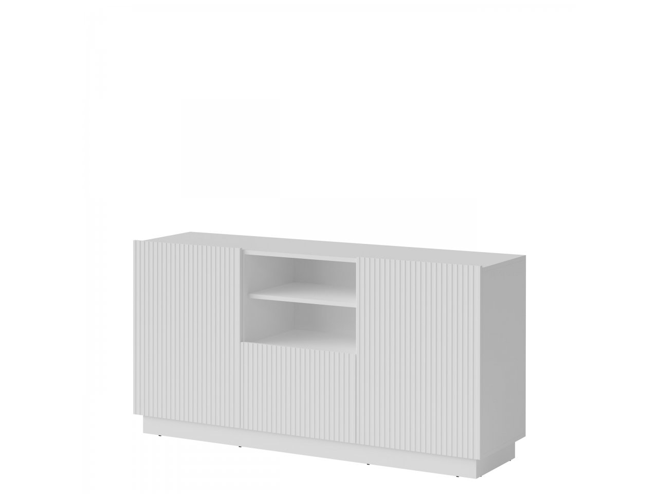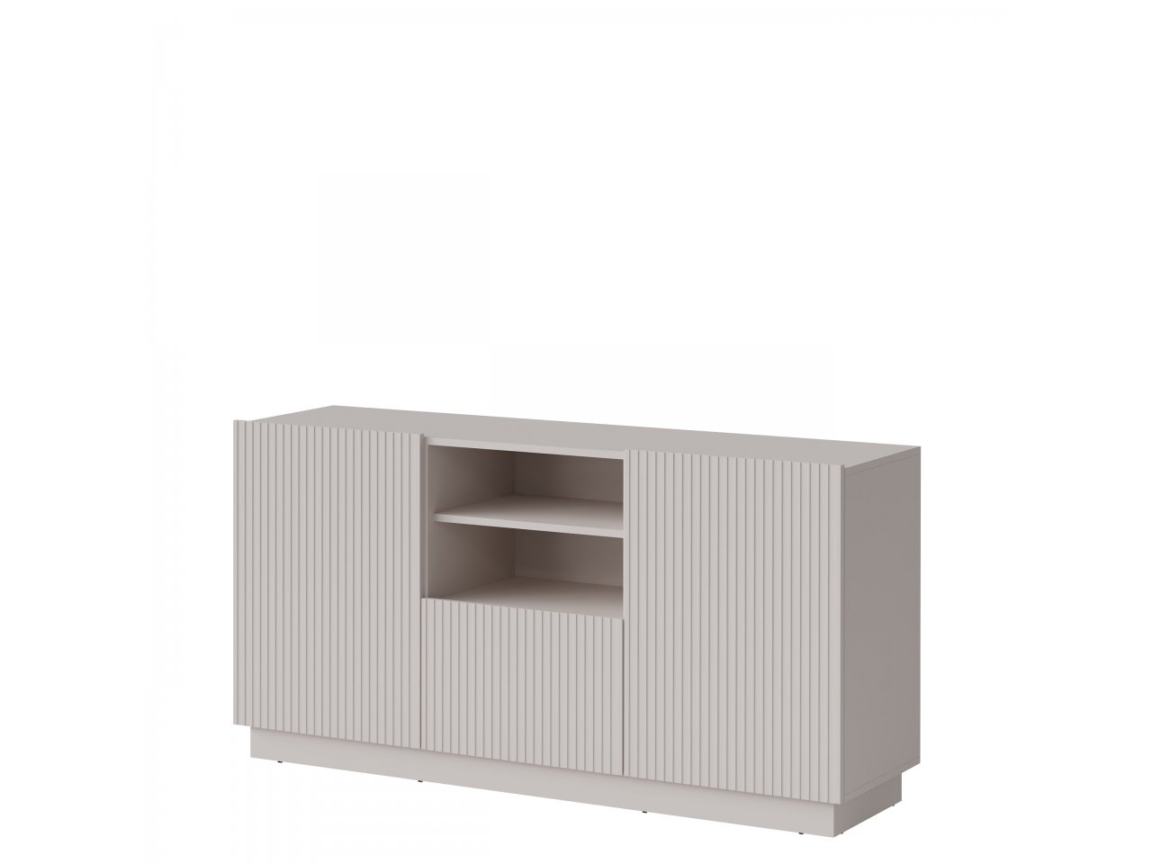 Dodajte svojmu domovu moderný nádych s komodou Ceroza 150 cm s drážkovanými prednými stranami. Minimalistický dizajn podčiarkuje eleganciu interiéru a zároveň je doplnený prvkami, ktoré rozširujú úložné možnosti.