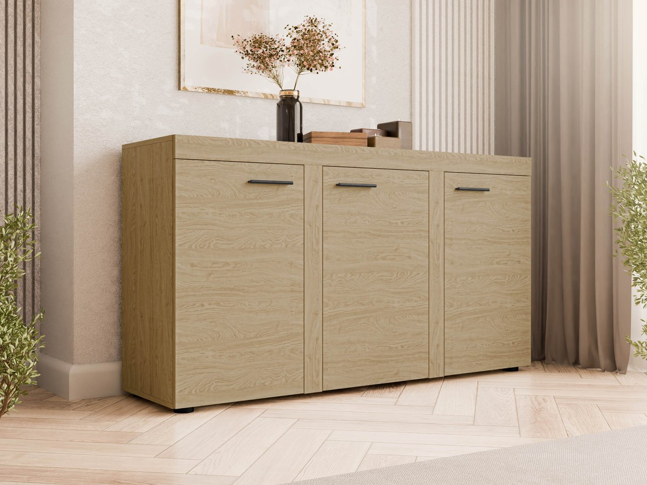Rhodos je jednoduchá a pôsobivá komoda do obývacej izby. Komoda je vyrobená z laminovanej dosky odolnej proti poškodeniu a poškriabaniu, vďaka čomu nábytok nadobúda spoľahlivosť a odolnosť. Široký výber farieb uľahčuje prispôsobenie komody k akémukoľvek interiéru.