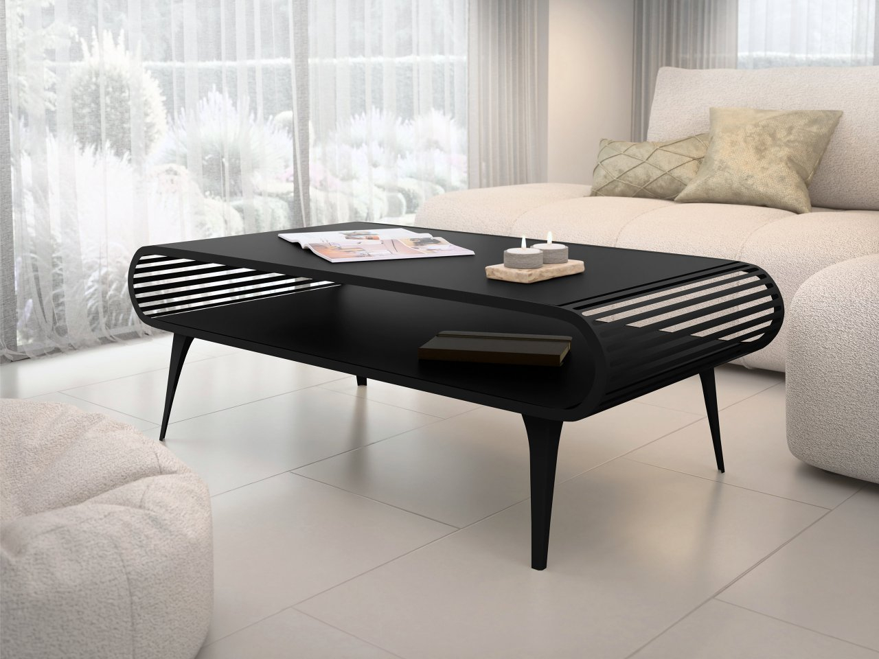 Mnohí ocenia tento model aj vďaka praktickej polici pod doskou stolíka. Ľahko prístupný priestor je skvelým miestom na odloženie praktických doplnkov, ako sú diaľkové ovládače, slúchadlá alebo kniha na relaxáciu.
