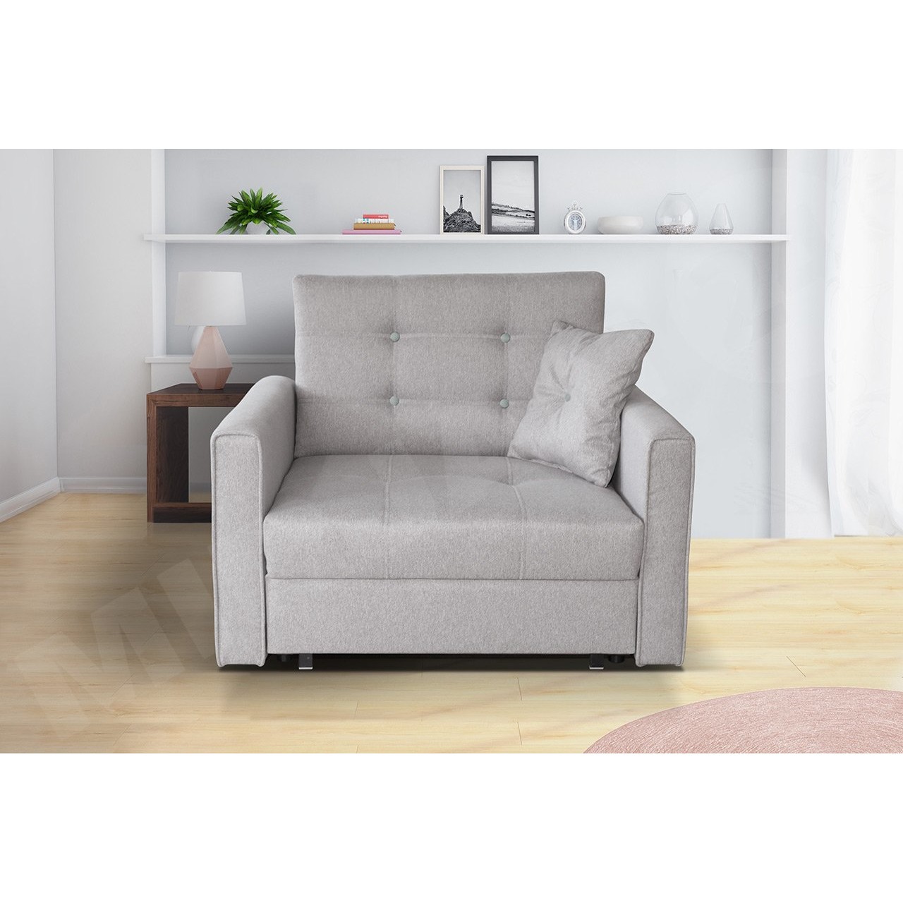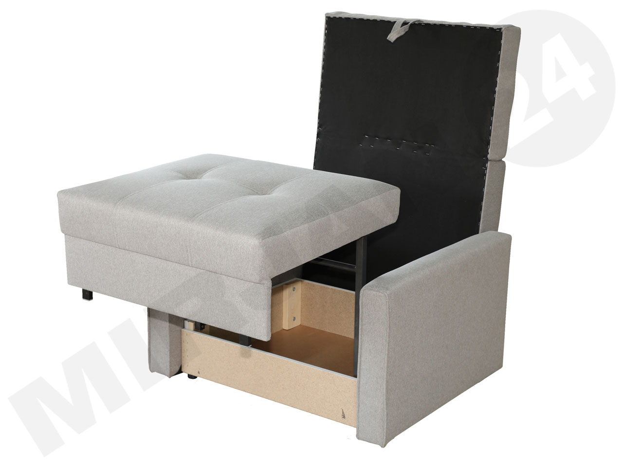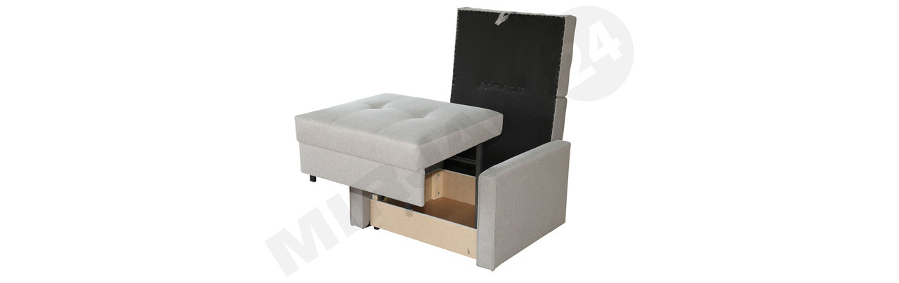 Napriek svojim menším rozmerom má veľa funkcií. Je vybavené priestranným úložným priestorom na posteľnú bielizeň a pohodlnou funkciou spania pre jednu osobu.