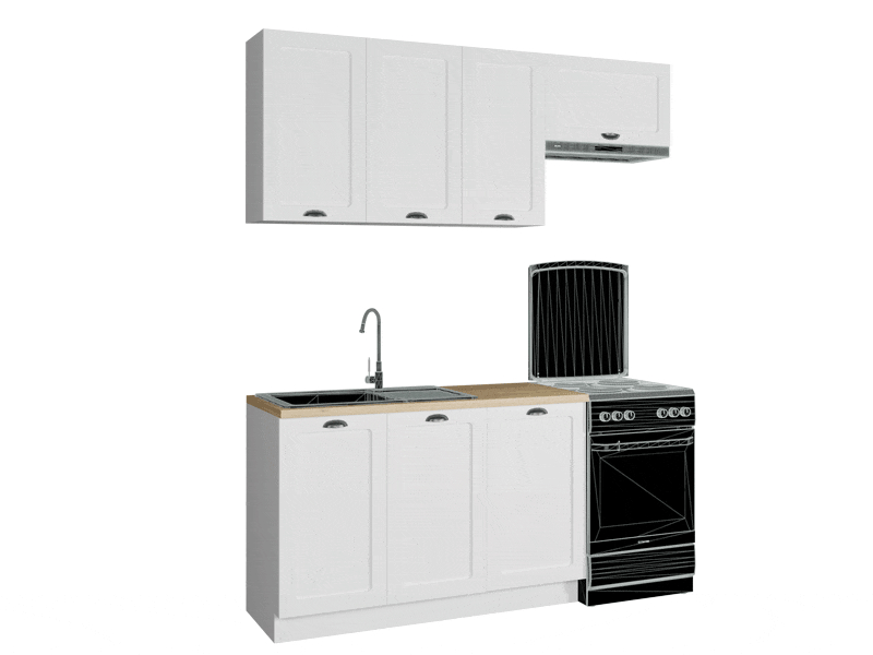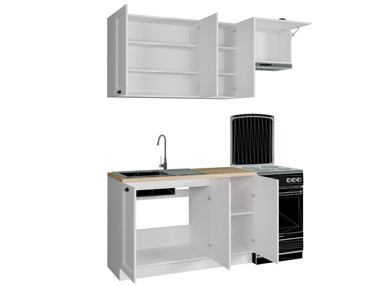 Kompaktná kuchyňa Luis 180 spája všetky podstatné prvky potrebné na prípravu jedál. Priestranné horné skrinky v kombinácii so spodnými skrinkami ponúkajú dostatok miesta na odkladanie kuchynského riadu aj potravín.