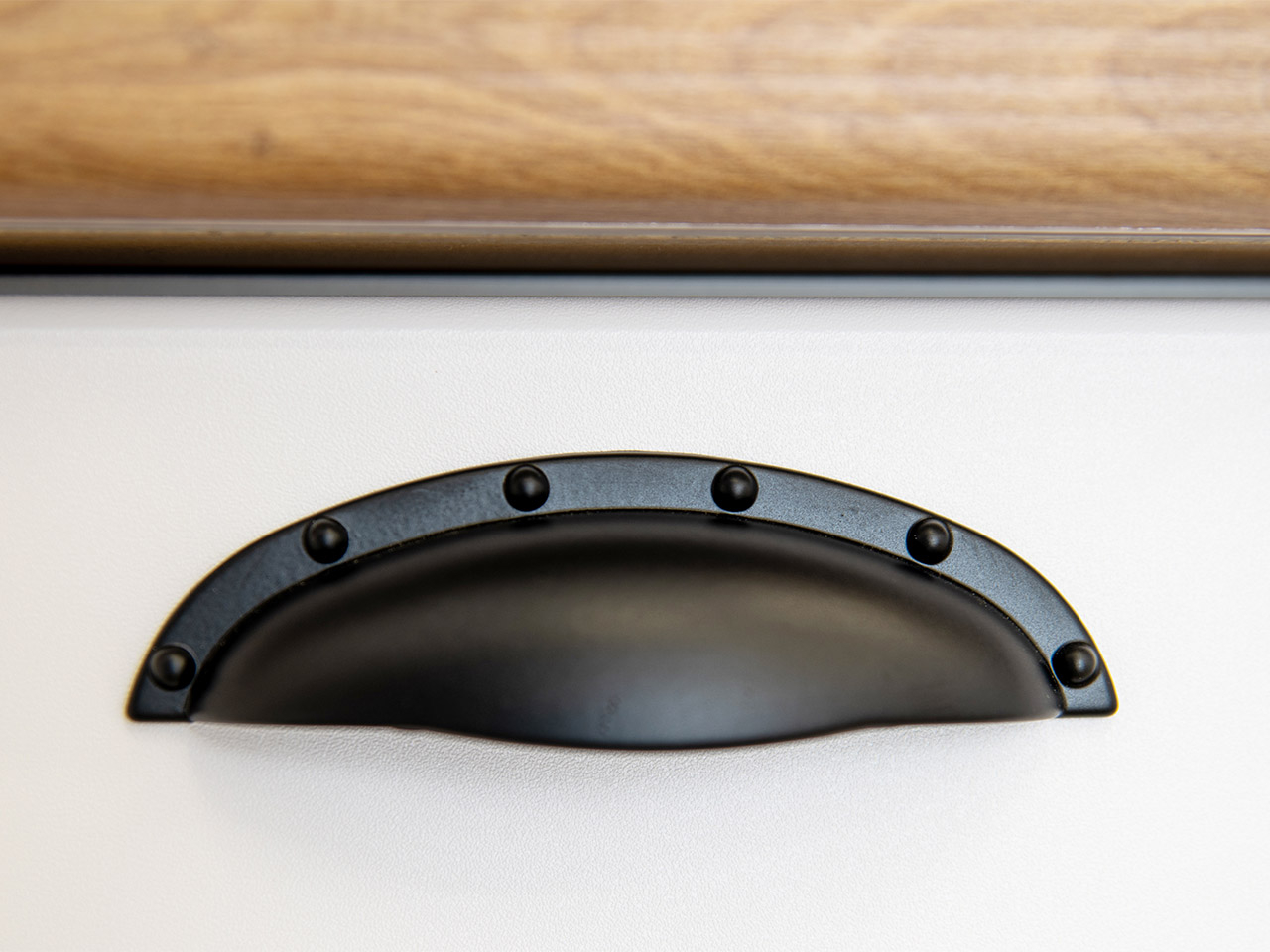 Jedinečný dizajn nábytku zvýrazňujú čelné plochy doplnené elegantnými úchytkami.