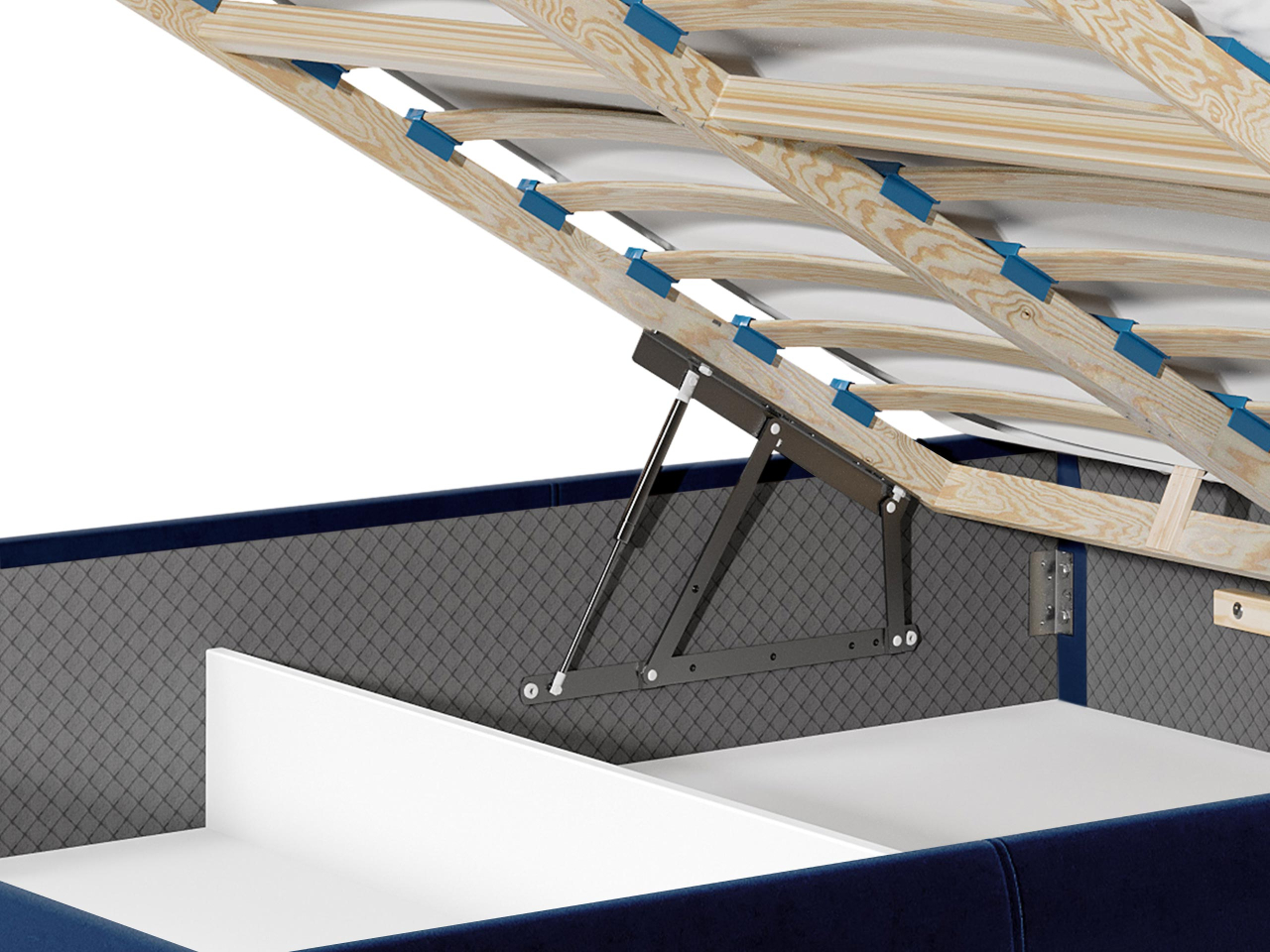 - úložný priestor na posteľnú bielizeň je vybavený plynovou pružinou, ktorá uľahčuje otváranie postele,