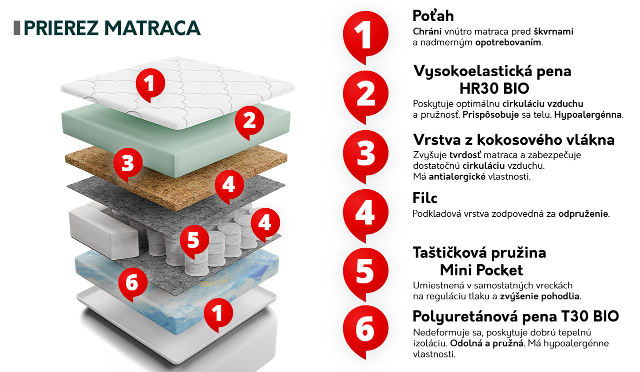 - 7 zón tvrdosti,
