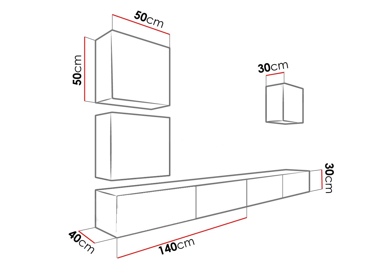 - TV Skrinka 140: šírka: 140 cm, výška: 30cm, hĺbka: 40cm x 2.