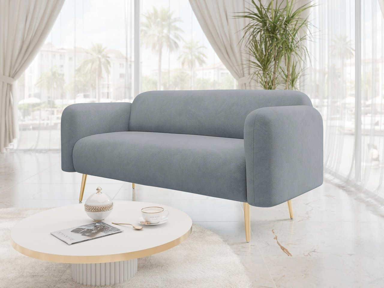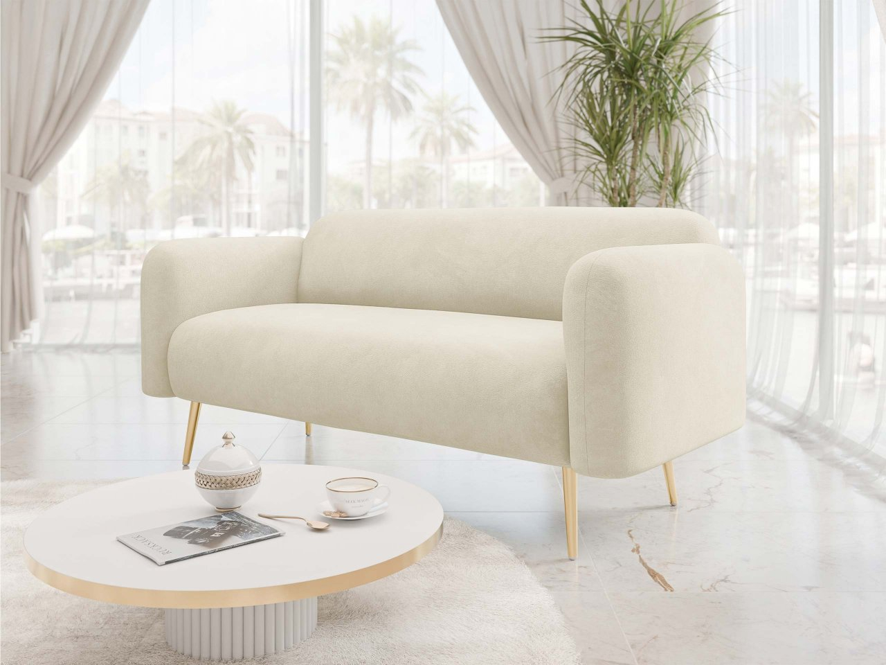 Štýlová rozkladacia pohovka Sanirk II je perfektnou voľbou do elegantnej obývačky alebo modernej kancelárie. Pohovku charakterizuje jej ľahký dizajnový dizajn. Zlaté kovové nohy jej dodávajú jedinečný charakter a decentný luxus, ktorý dokonale dopĺňa rôzne štýly interiéru – od očarujúceho až po modernú klasiku.