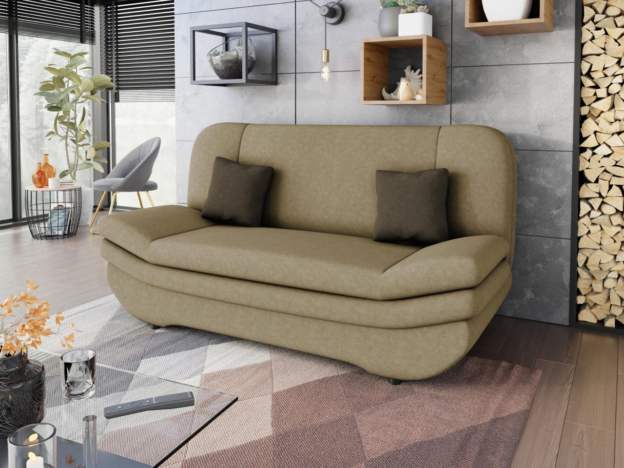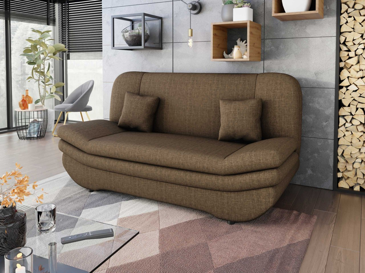 Rozkladacia pohovka Lena zaujme moderným dizajnom a zároveň ponúka maximálne pohodlie pri sedení. Zaoblené strany a prešívané detaily dodávajú pohovke moderný a jedinečný charakter. Rozkladacia pohovka má funkciu spania, úložný priestor a vankúše. Drevený rám v kombinácií s drevotrieskou zaisťuje vynikajúcu odolnosť a pohodlie. Môžete si vybrať zo širokej škály farieb a textílií zobrazených na našej stránke.