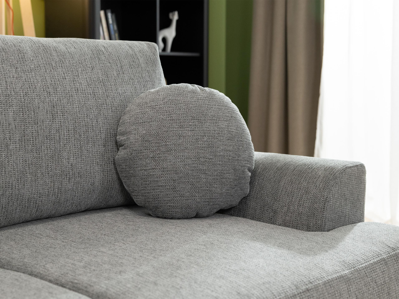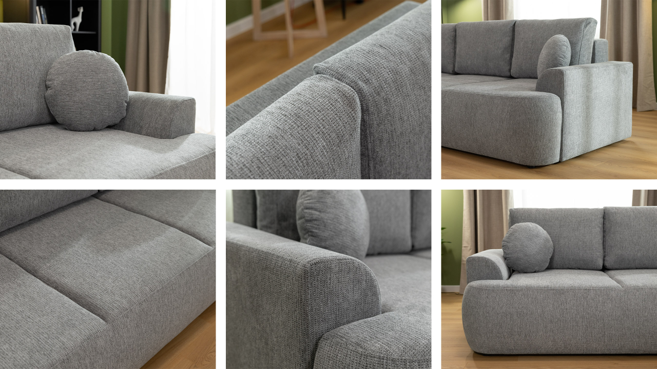 Tento model má priehradku na posteľnú bielizeň, ktorá poskytuje dodatočný úložný priestor, ideálny na paplóny, vankúše alebo prikrývky. Ďalšou výhodou tejto rozkladacej pohovky je jej pohodlné operadlo. Dodáva sa s tromi nastaviteľnými vankúšmi, ktoré sa prispôsobia tvaru vášho chrbta. Súčasťou balenia sú aj dekoratívne vankúše.