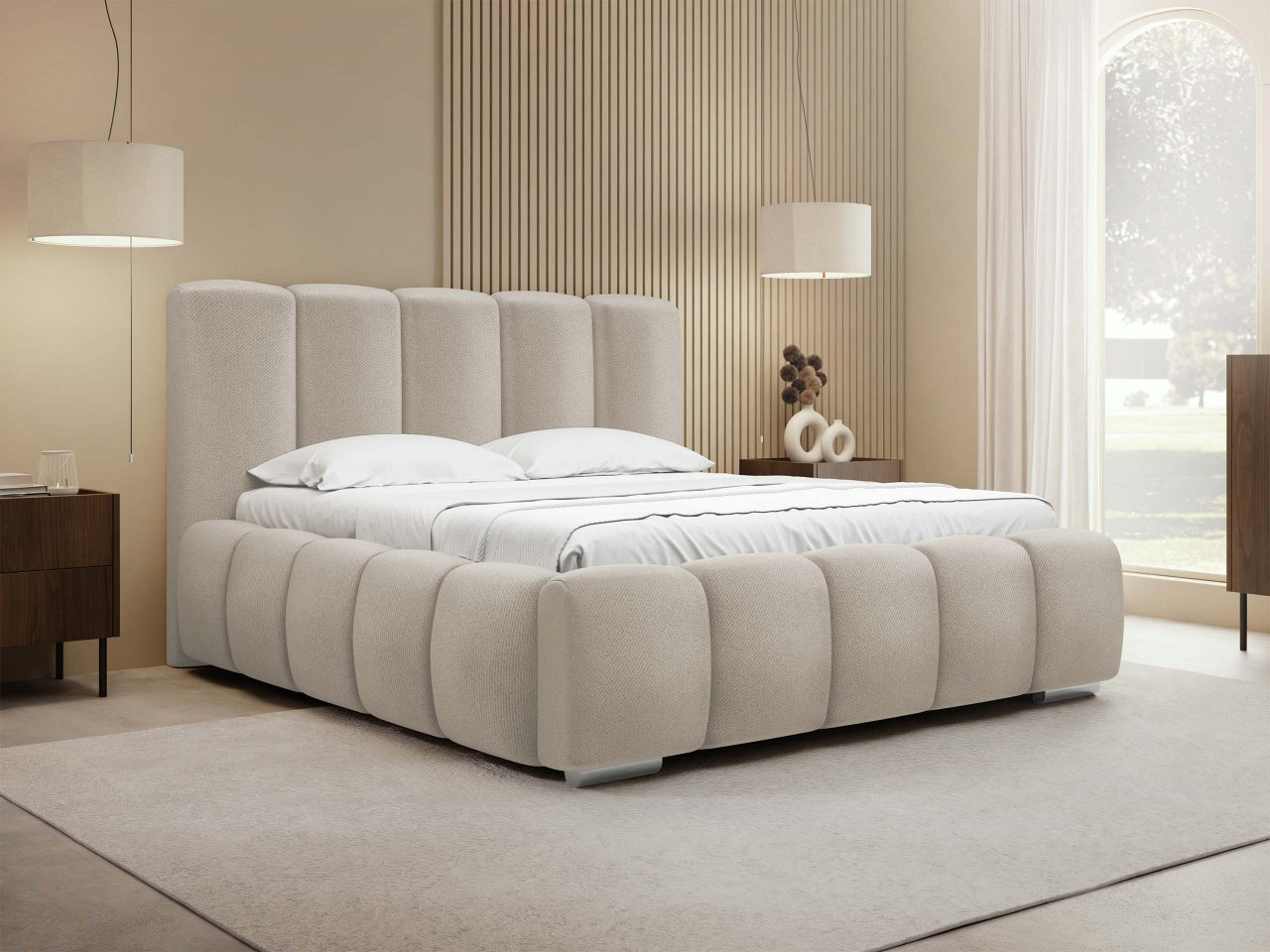 Čalúnená posteľ Lisko je niečo, čo poteší každého milovníka štýlu! Model vytvorený v súlade s najnovšími trendmi. To, čo zaujme na prvý pohľad, je určite jedinečný dizajn. Vyzerá ako obláčik, na ktorom zregenerujete svoje sily na ďalší deň. Trendy farby čalúnenia vám umožnia prispôsobiť tento variant zariadeniu vašej spálne. Materiál je mäkký a príjemný na dotyk, čo sa premieta do ešte väčšieho pohodlia.