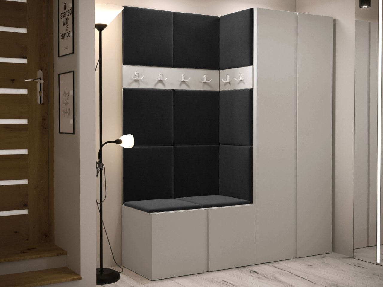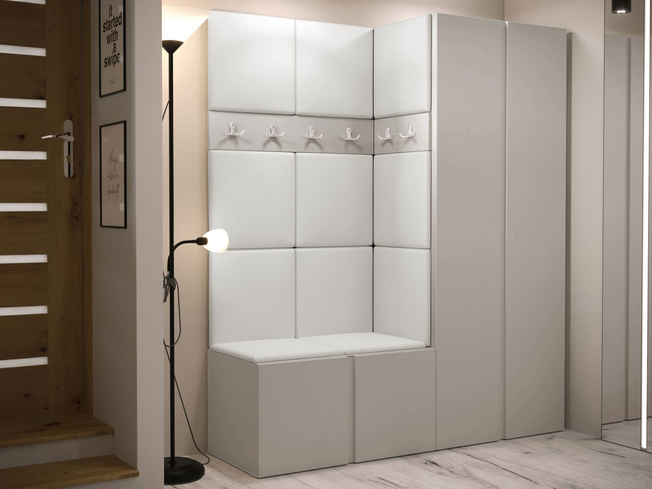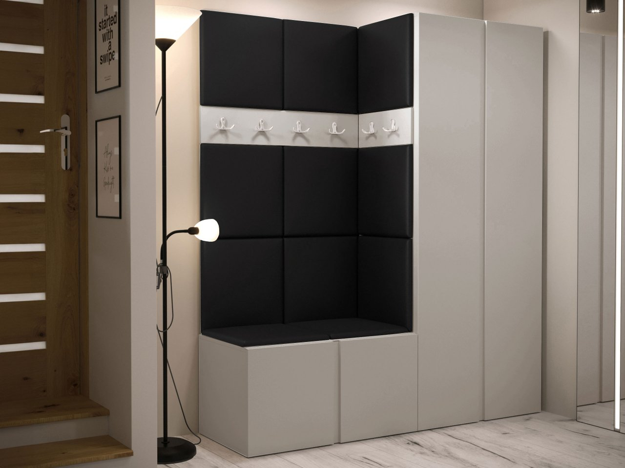 Predsieňová zostava Tavasz III je základom pre módny dizajn chodby a predsiene. Jeho umiestnením hneď vedľa dverí si môžete byť istí, že po príchode domov vás vždy privíta efektne a prakticky vyzdobená miestnosť. Maximálnu funkčnosť týchto kusov nábytku zvýhodňuje kombinácia šatníkovej skrine s botníkom. Takáto kombinácia poskytuje optimálny priestor pre oblečenie, ako aj topánky a športové vybavenie. Čalúnené panely dodávajú nábytku predsiene zaujímavý vzhľad. K dispozícii v niekoľkých farbách, lemujú steny a tiež vytvárajú oporu, ktorá uľahčuje obúvanie topánok. Celok dopĺňa panel s vešiakmi - šikovné miesto na zavesenie búnd a kabátov hostí.