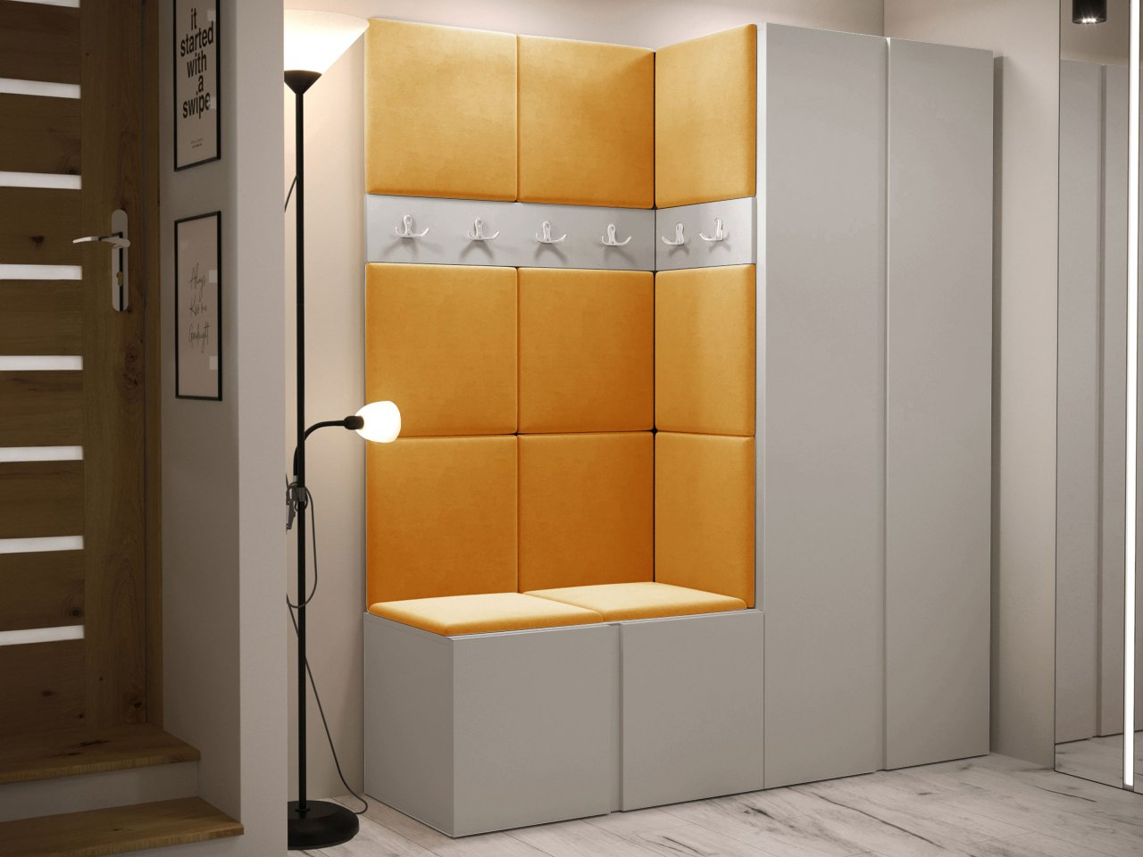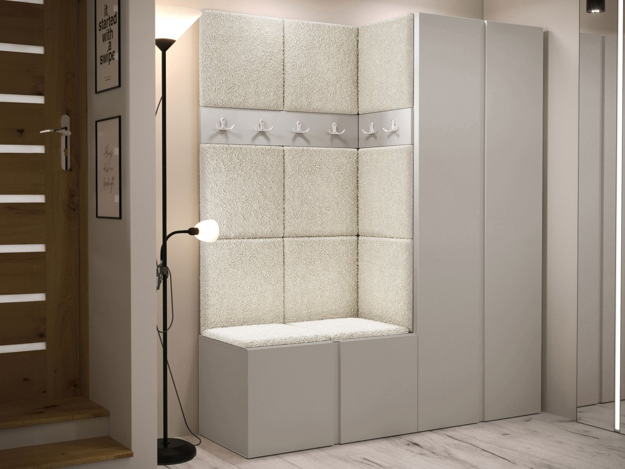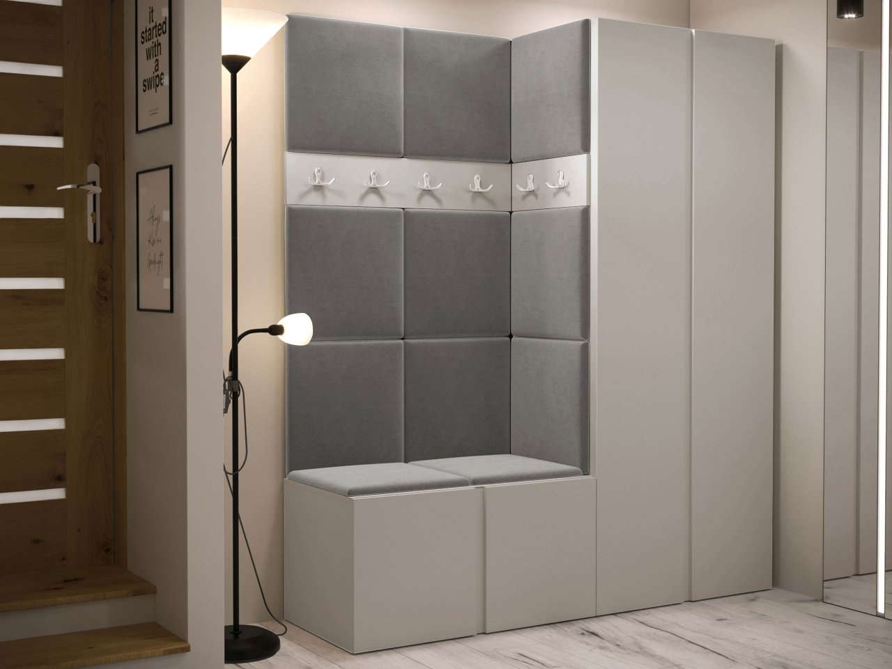 Predsieňová zostava Tavasz III je základom pre módny dizajn chodby a predsiene. Jeho umiestnením hneď vedľa dverí si môžete byť istí, že po príchode domov vás vždy privíta efektne a prakticky vyzdobená miestnosť. Maximálnu funkčnosť týchto kusov nábytku zvýhodňuje kombinácia šatníkovej skrine s botníkom. Takáto kombinácia poskytuje optimálny priestor pre oblečenie, ako aj topánky a športové vybavenie. Čalúnené panely dodávajú nábytku predsiene zaujímavý vzhľad. K dispozícii v niekoľkých farbách, lemujú steny a tiež vytvárajú oporu, ktorá uľahčuje obúvanie topánok. Celok dopĺňa panel s vešiakmi - šikovné miesto na zavesenie búnd a kabátov hostí.