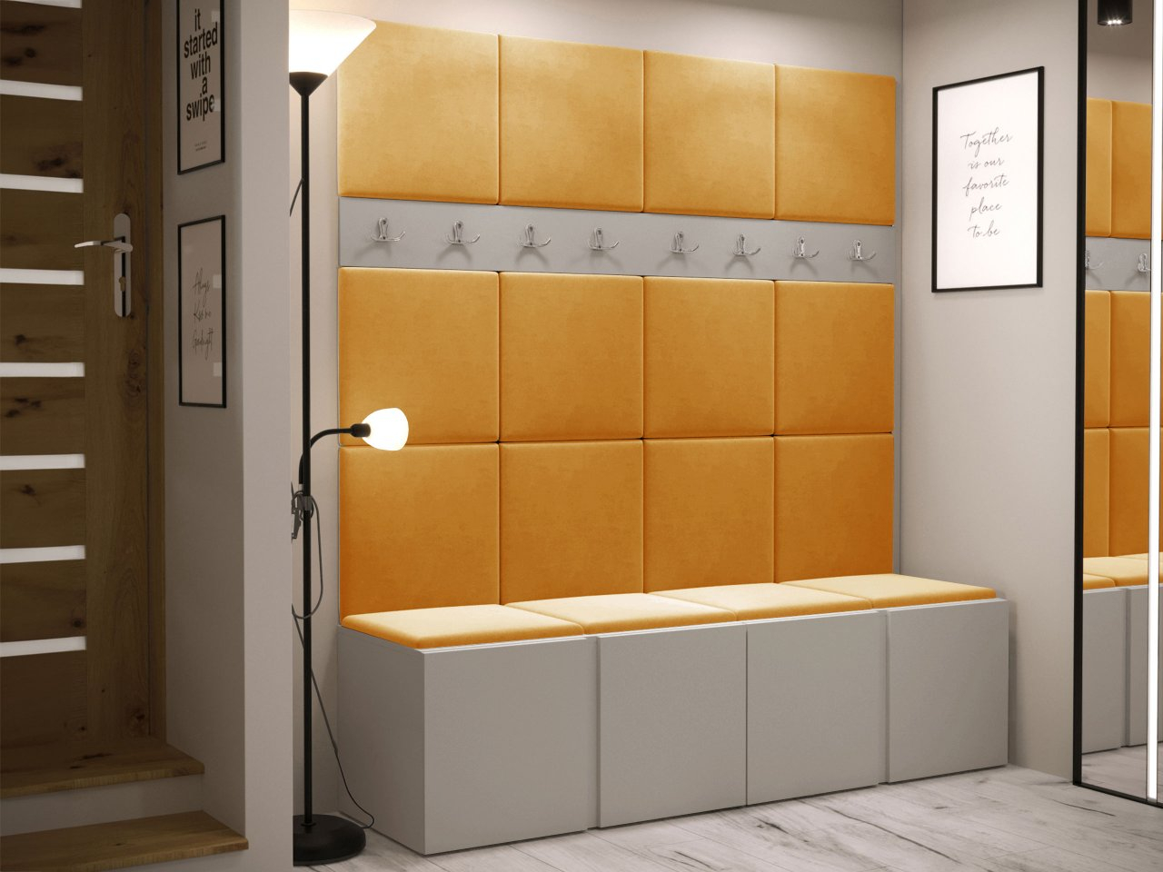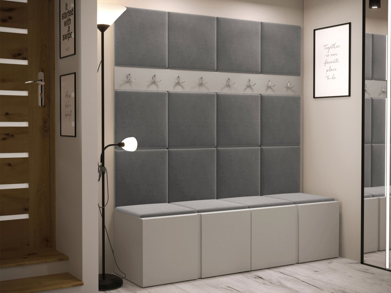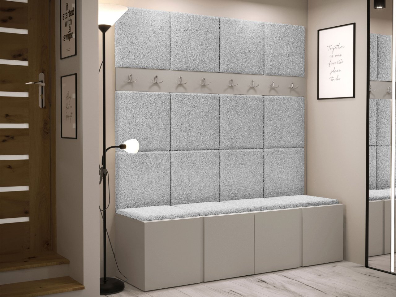 Zariadiť predsieň tak, aby sa stala ozdobou celého domu, je skutočnou výzvou. Oplatí sa vybrať nábytok, ktorý bude funkčný, efektný a zároveň štýlový. Šatník Tavasz V bude skvelou voľbou! Celok je zložený z praktických botníkov a mäkkého a pohodlného sedadla. Šatňa so sedákom z čalúnených panelov je ako stvorená do moderných interiérov. Čalúnené panely chránia steny pred nečistotami a poškodením, pohlcujú zvuk a majú 3D efekt, ktorý vyzerá skvele.Veľký výber farieb uľahčí zladenie s interiérom. Tento model sa bude hodiť do každej domácnosti!