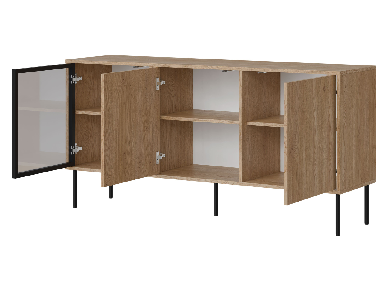 Elegantná a funkčná komoda Tugba 150 cm dokonale kombinuje moderný dizajn s praktickými riešeniami. Priestranné skrinky vám umožnia udržiavať poriadok, zatiaľ čo presklená časť efektívne vystavuje dekorácie a doplnky. Tmavé sklo dodáva komode sofistikovaný vzhľad a zvýrazňuje jej reprezentatívny charakter.