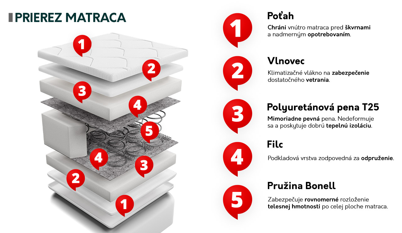 - odporúča sa matrac otáčať každé 2-3 mesiace,