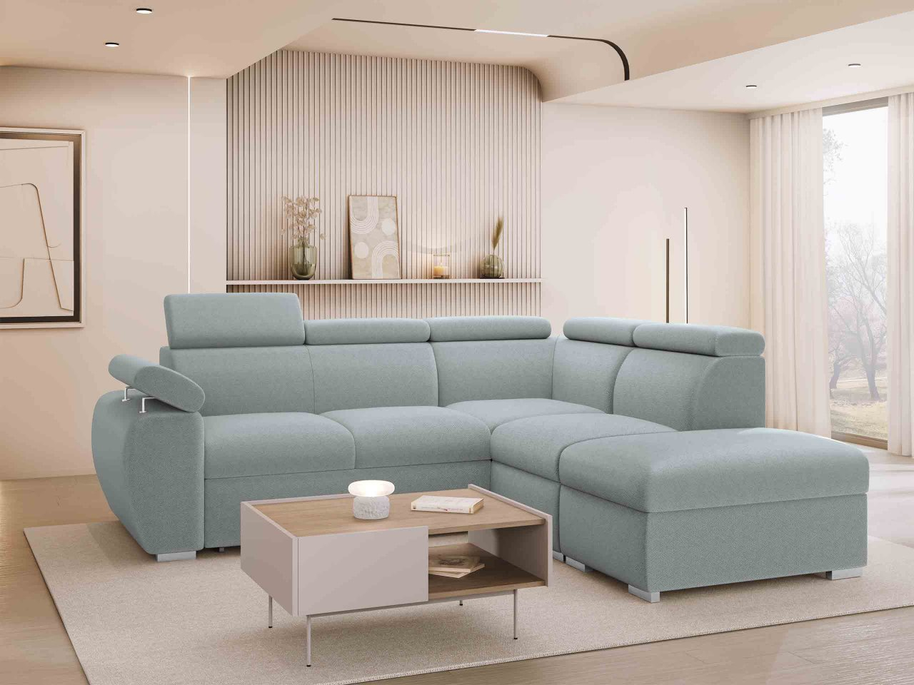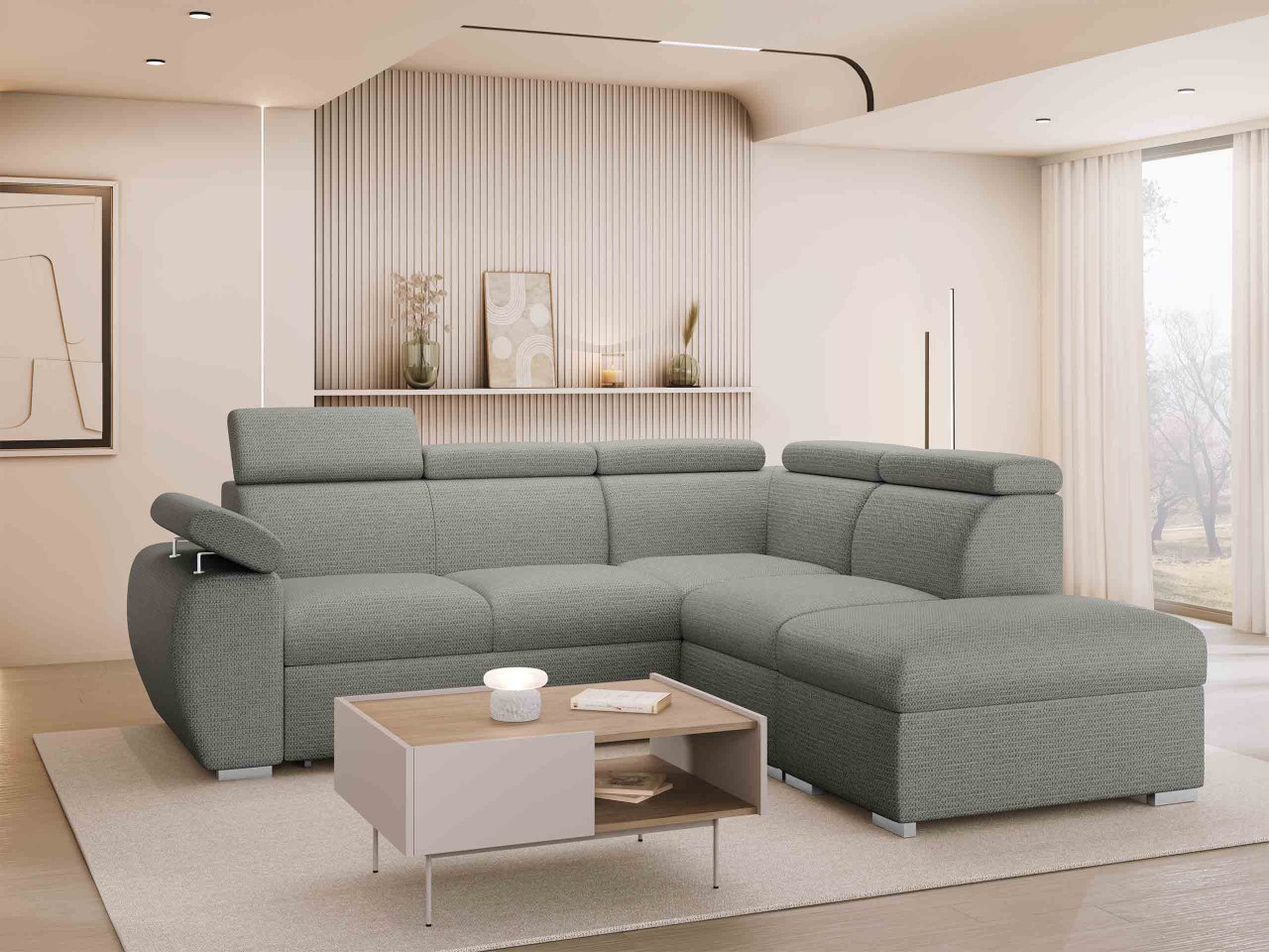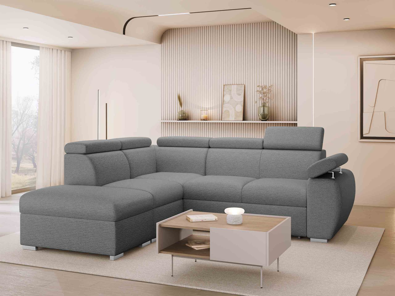 Táto pohodlná rohová rozkladacia pohovka je praktickou voľbou. Vďaka svojej funkcii na spanie je tiež ideálna do menších bytov, kde slúži ako posteľ v noci. Pre väčšie obývačky je dobrým riešením pre ďalšie prenocovanie hostí. To však nie je všetko, čo model Giza 2RR1P ponúka! Pohľad dovnútra odhalí dva priestranné úložné priestory na posteľnú bielizeň, prikrývky a vankúše. Akoby to nestačilo, tento variant je vybavený nastaviteľnými opierkami hlavy pre väčšie pohodlie.