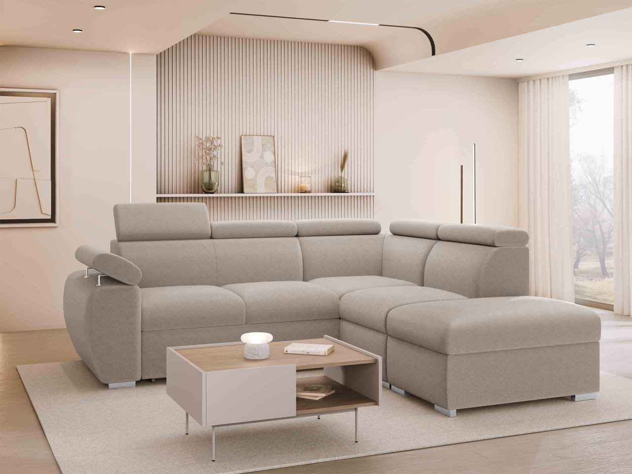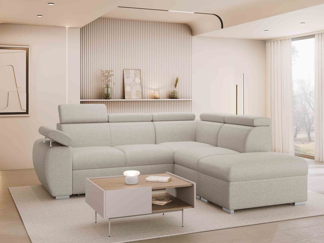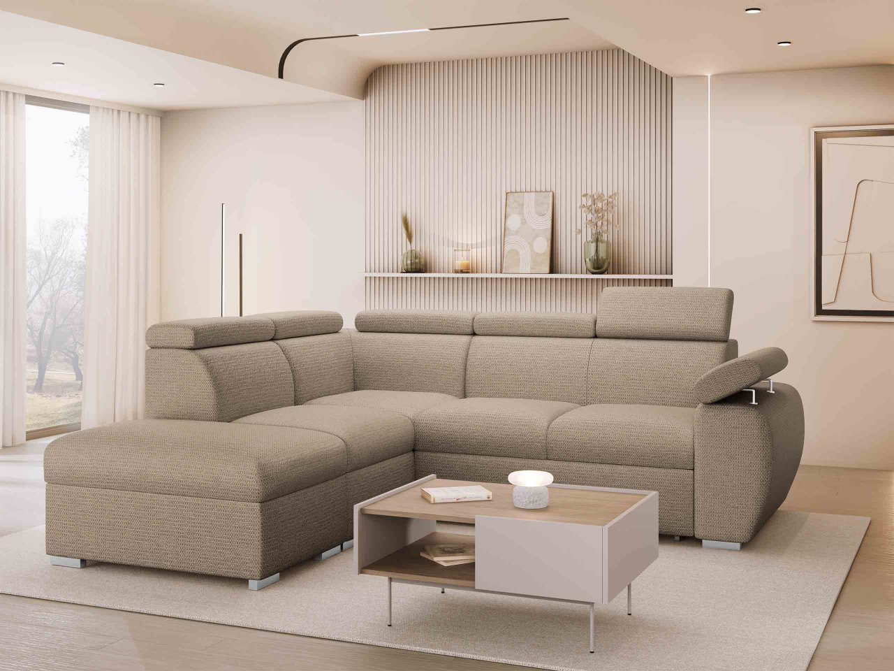 Táto pohodlná rohová rozkladacia pohovka je praktickou voľbou. Vďaka svojej funkcii na spanie je tiež ideálna do menších bytov, kde slúži ako posteľ v noci. Pre väčšie obývačky je dobrým riešením pre ďalšie prenocovanie hostí. To však nie je všetko, čo model Giza 2RR1P ponúka! Pohľad dovnútra odhalí dva priestranné úložné priestory na posteľnú bielizeň, prikrývky a vankúše. Akoby to nestačilo, tento variant je vybavený nastaviteľnými opierkami hlavy pre väčšie pohodlie.