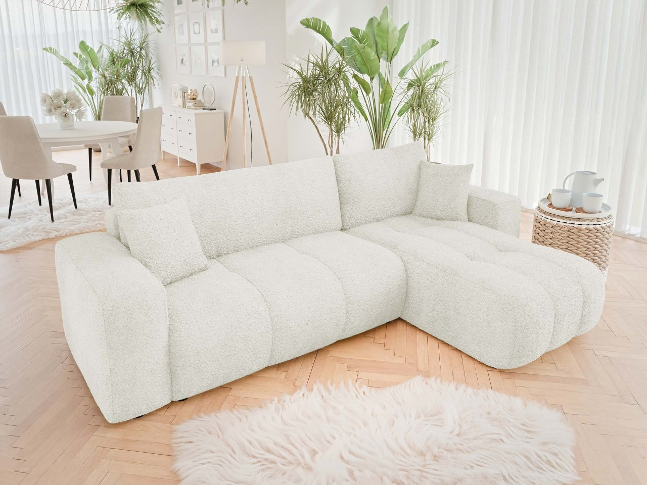 Vďaka rozkladacej funkcii sa sedačka v priebehu okamihu premení na priestrannú a pohodlnú posteľ. Je to ideálne miesto na rýchle zdriemnutie si počas dňa aj na plnohodnotný nočný spánok. Dekoratívne šitie a jemné prešívanie dodávajú tomuto kusu nábytku pozoruhodne elegantný a moderný vzhľad. Larow Boucle je rohová sedačka, ktorá kombinuje krásny tvar s plnou funkčnosťou. Kľúčovým prvkom je aj jej atraktívna štruktúra slučiek - boucle.