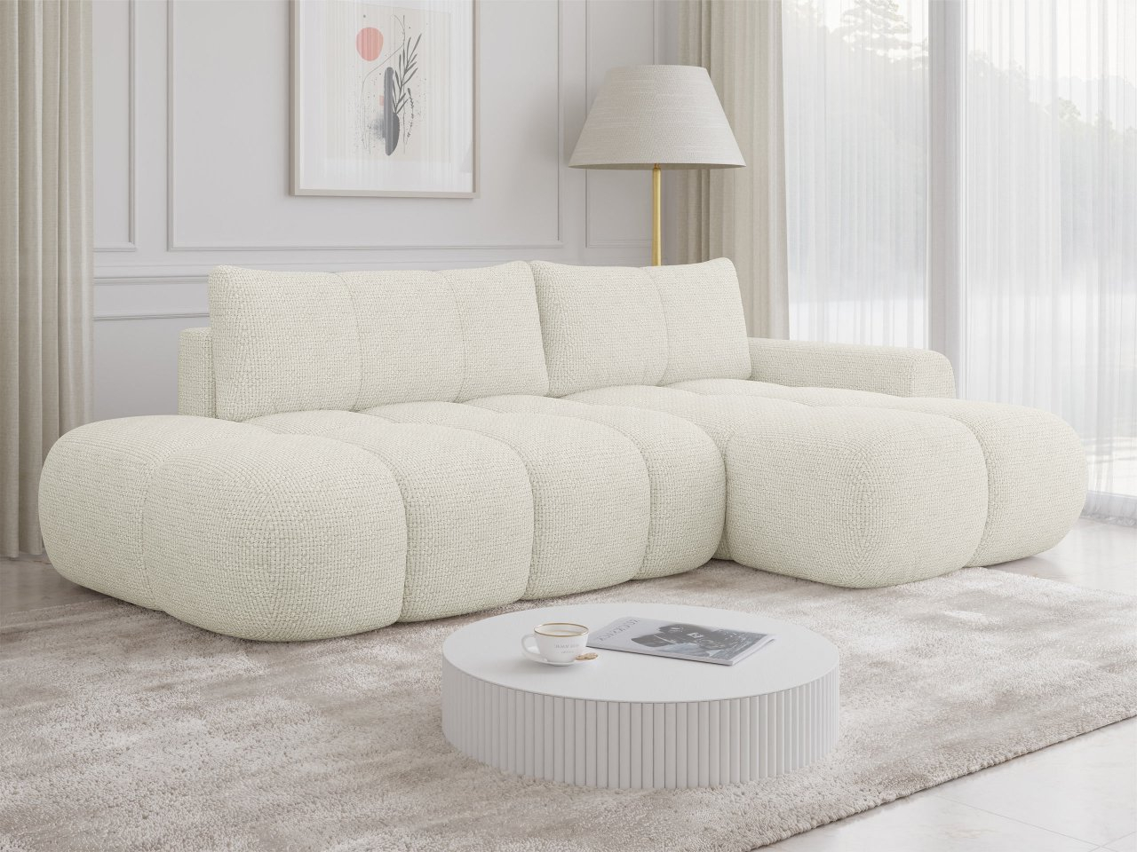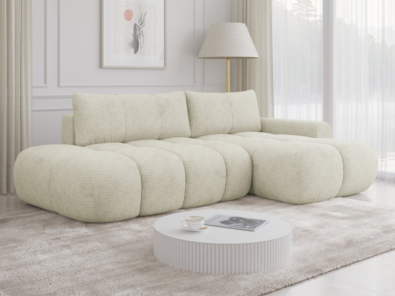 Rohová pohovka Zerlita O ponúka aj premyslenú funkciu spania, založenú na stabilnom a širokom rozložení povrchu. Po rozložení vytvorí pohodlné lôžko, ktoré ľahko uspokojí každodenné potreby, a to ako pre spontánnych hostí, ktorí prenocujú, tak aj pre pravidelné používanie.