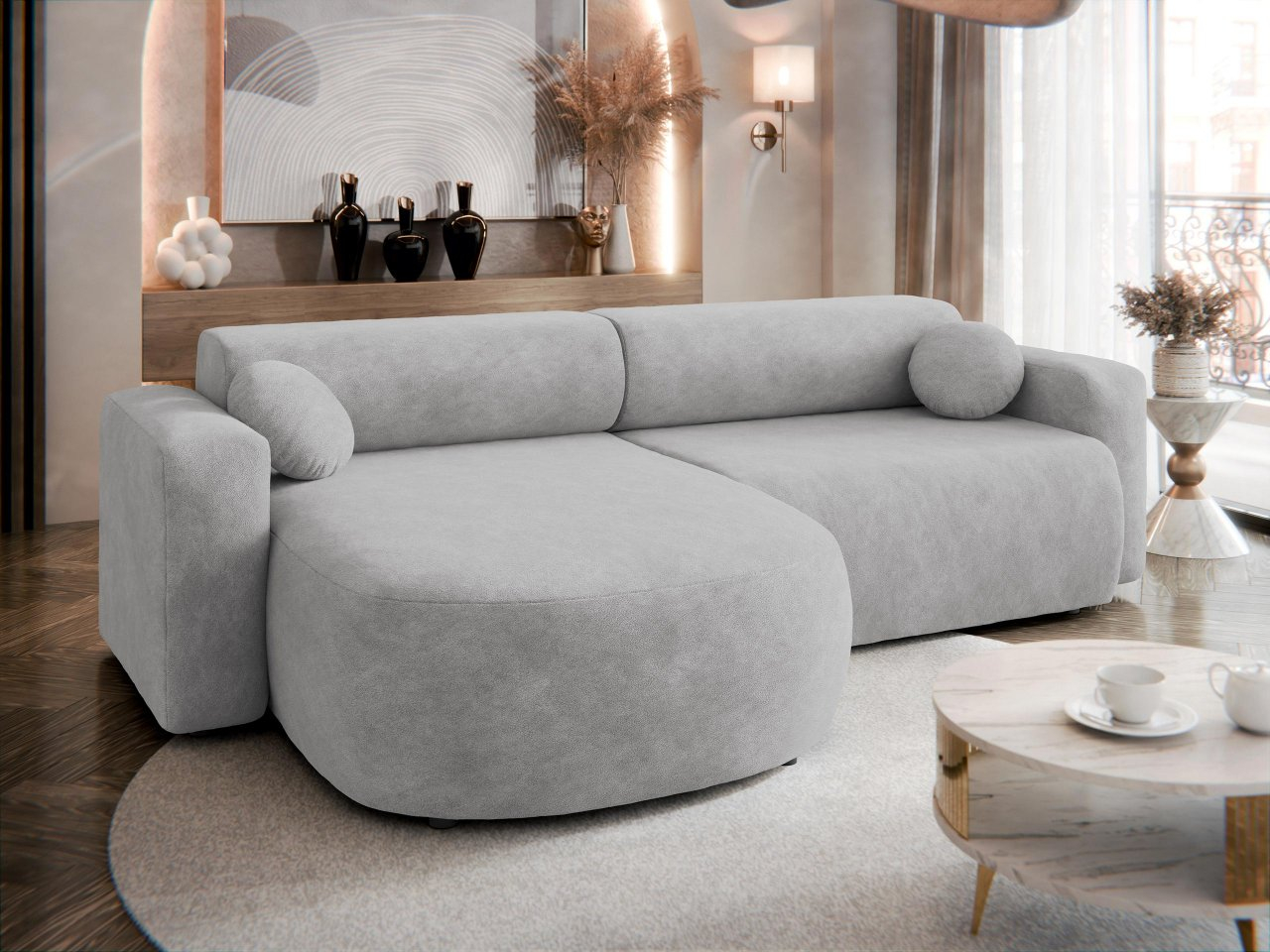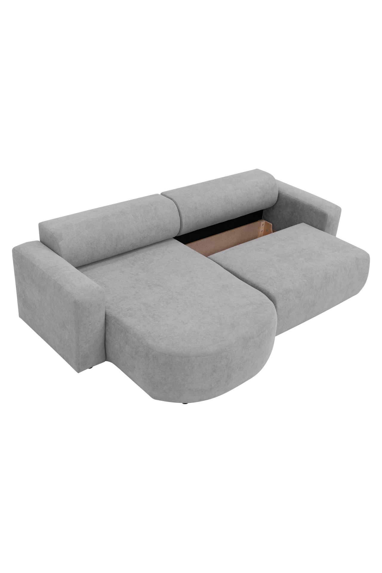 Zaoblená leňoška hladko dopĺňa tvar rohovej pohovky a ponúka priestor vhodný na relaxáciu kedykoľvek počas dňa. Okrúhle vankúše sú dekoratívnym akcentom, ktorý dodáva celku nádych elegancie.