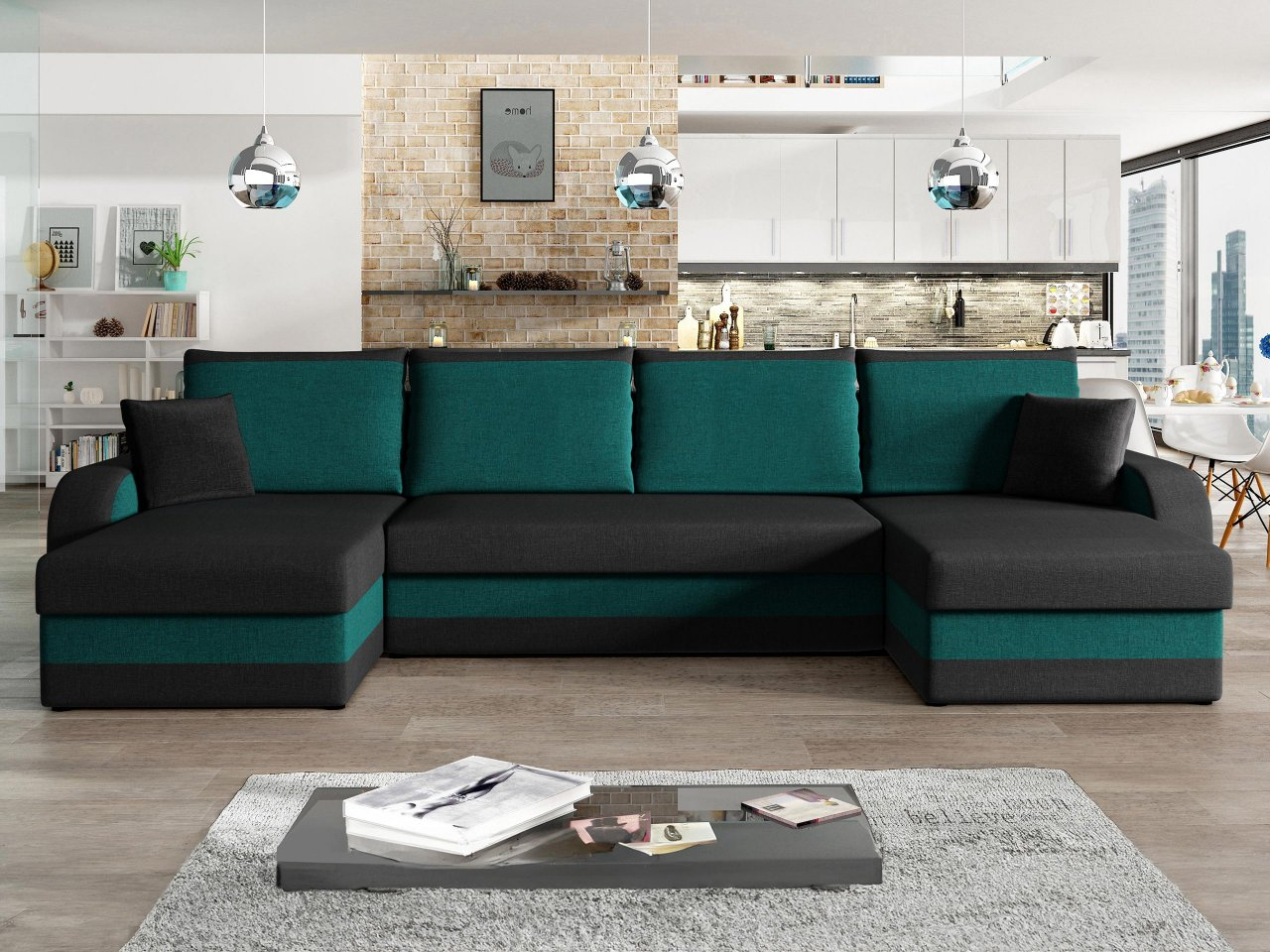 Dalmir U Lux je veľká sedačka široká 304 cm v tvare písmena "U". Vďaka tomuto tvaru získala sedačka dva priestory na sedenie s dĺžkou 107 cm. Sedačke ako operadlo slúžia vankúše v dvoch veľkostiach. Každý vankúš je vybavený zipsom, ktorý umožňuje čistenie obliečok na vankúše. Okrem toho má sedačka rozkladaciu funkciu. V rozloženom stave je jej plocha 268x130 cm, čo zaisťuje pohodlný spánok pre dve osoby. Náhradnú posteľnú bielizeň, deky či iné doplnky môžete pohodlne uskladniť v troch priestranných úložných priestoroch zabudovaných priamo v sedačke. Rohová rozkladacia sedačka Dalmir je dostupná v módnych farebných variantoch a na jej výrobu boli použité kvalitné materiály.