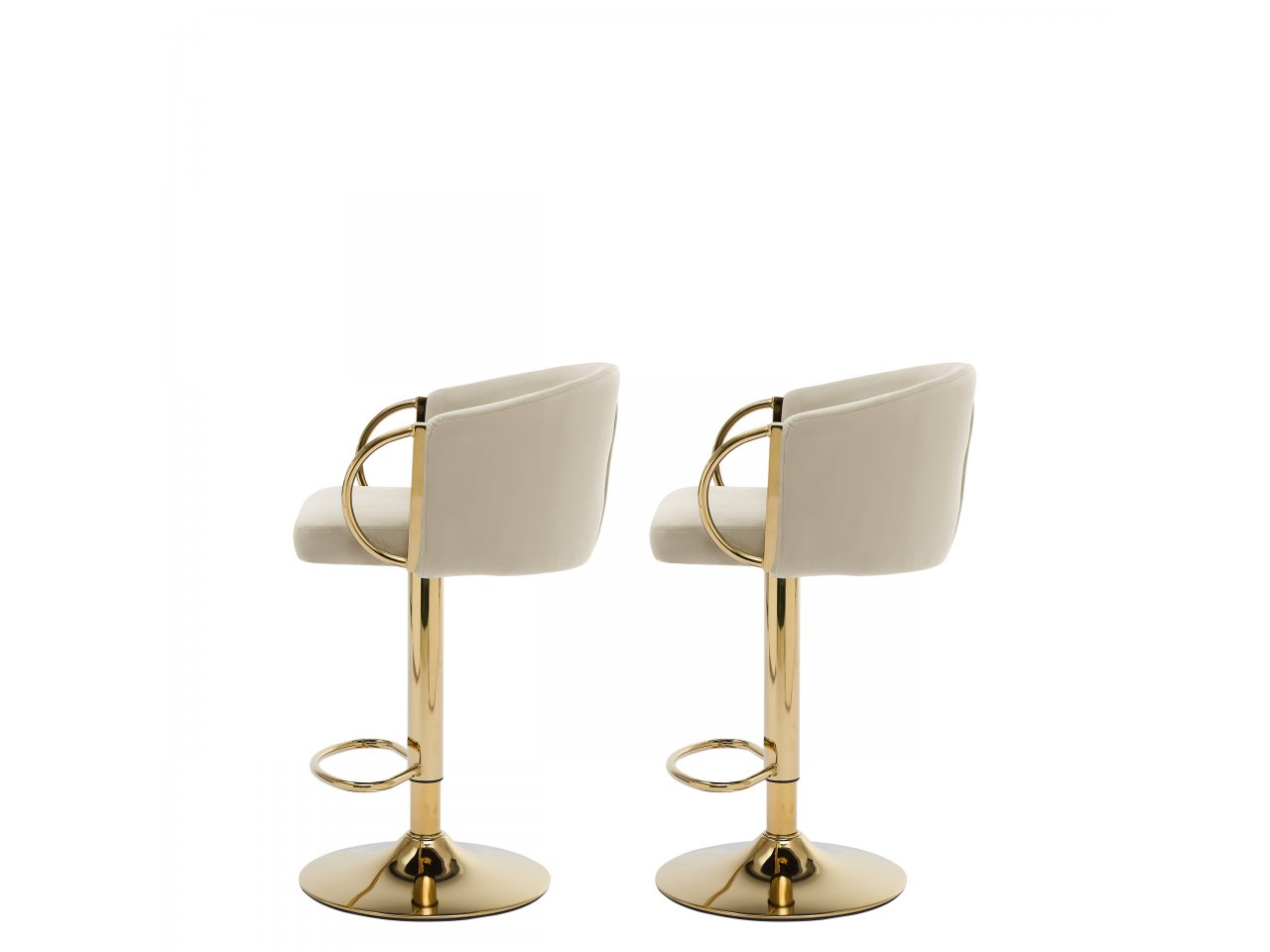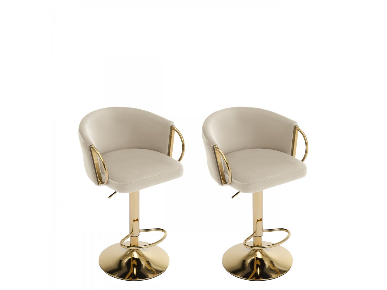 Vďaka farebnej palete si môžete vybrať perfektnú možnosť pre vás. Dekoratívny charakter barových stoličiek podčiarkuje nielen elegantný typ látky, ale aj ich operadlo. Vďaka praktickým úchytkám sa na stoličke ľahko usadíte aj zosadnete. Nastaviteľná výška sedadla poskytuje pridanú hodnotu.