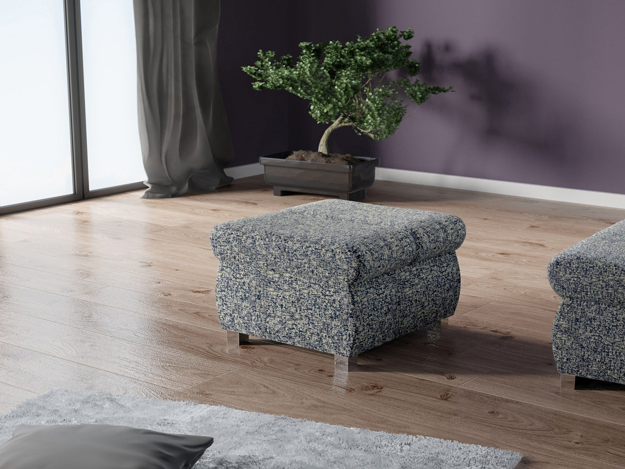 Moderná malá taburetka Kanton bude skvelým doplnkom obývačky, kde už nie je miesto na ďalšiu pohovku alebo kreslo. Zaberá málo miesta. Taburetka Kanton je k dispozícii v širokej škále farieb. Tkaniny, z ktorých je sedadlo vyrobené, sú do značnej miery založené na odtieňoch šedej. Na druhej strane je spodná časť taburetky vyrobená z ekokože, čo výrazne uľahčuje čistenie. Taburetka Kanton bude perfektne ladiť s rohovou sedačkou Caro.