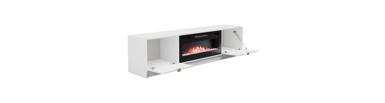 Televízna skrinka s krbom Razimo EF je kus nábytku, ktorý skvele zapadne do moderných aranžmánov. Poskytne úžasný vzhľad, funkčnosť a teplo. Elektrický krb je ako stvorený na dlhé večery na jeseň a v zime. Realistický LED plameň dodá útulnosť a funkcia vykurovania vyhreje interiér až na 28°C.