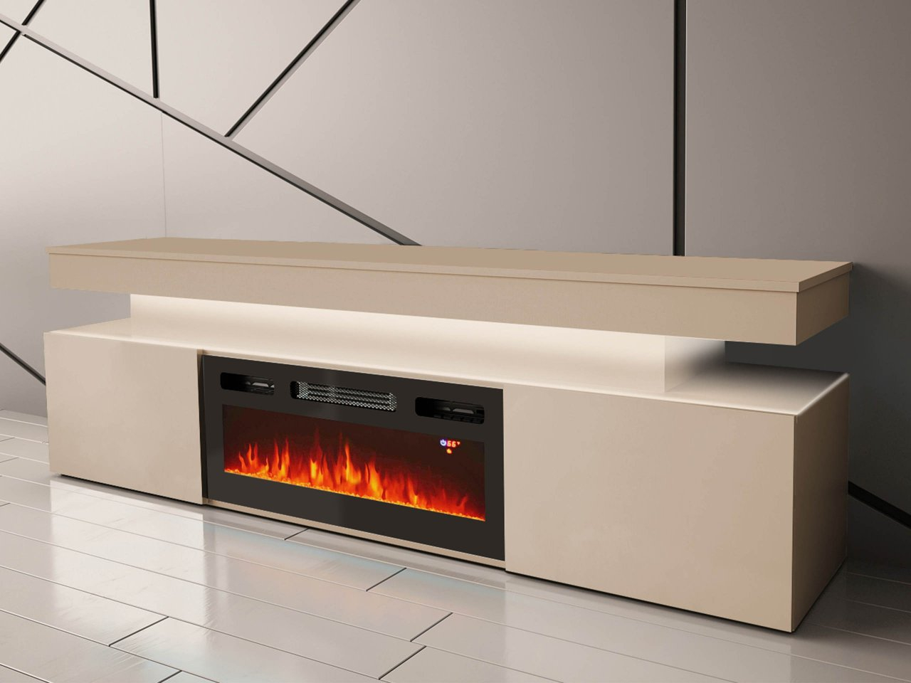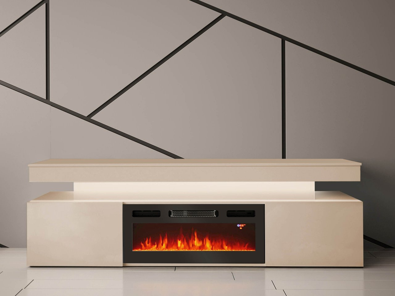 Ďalším lákadlom TV skrinky je jej elektrický krb. Vyžarujúca realistické plamene vytvára v obývačke útulnú atmosféru. Vďaka samostatnej funkcii vykurovania verne napodobňuje tradičný krb, čo potvrdzuje jeho praktickosť v každej domácnosti.