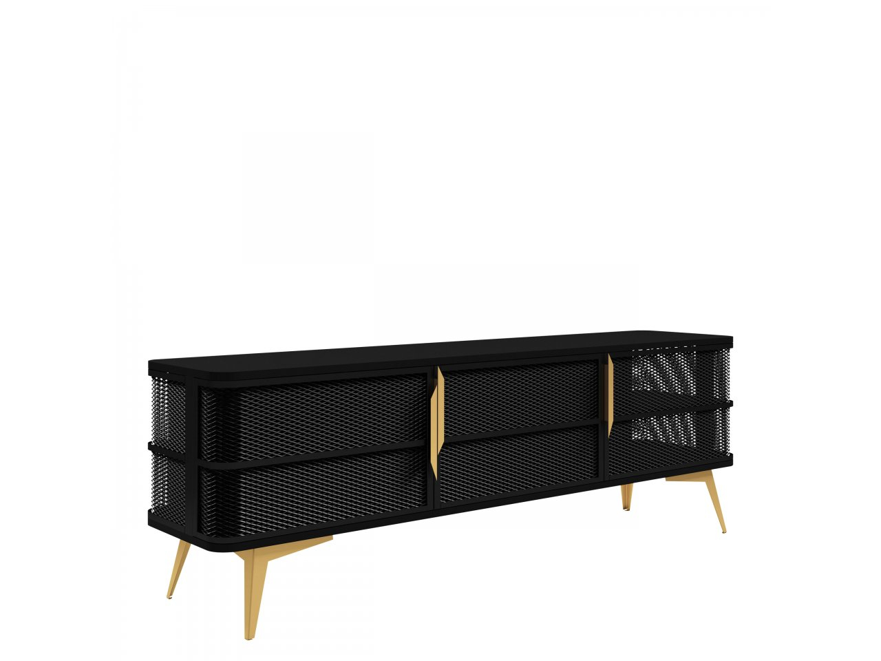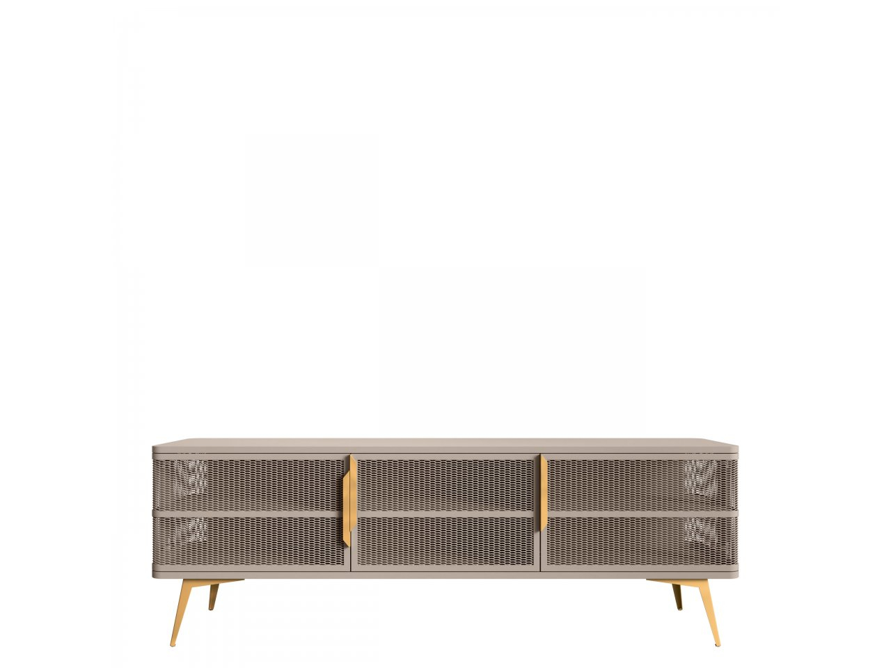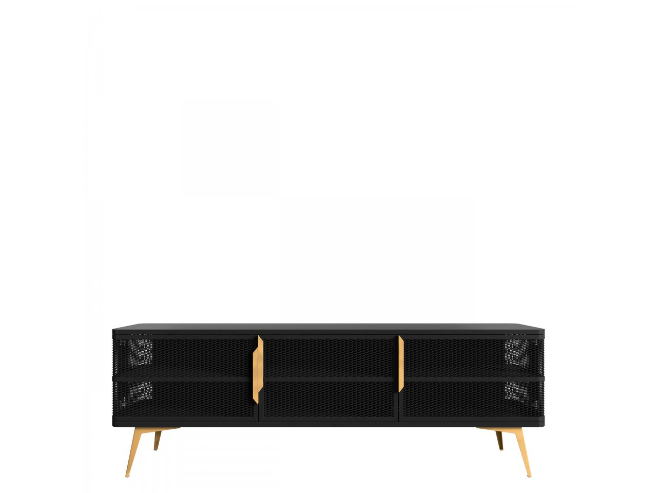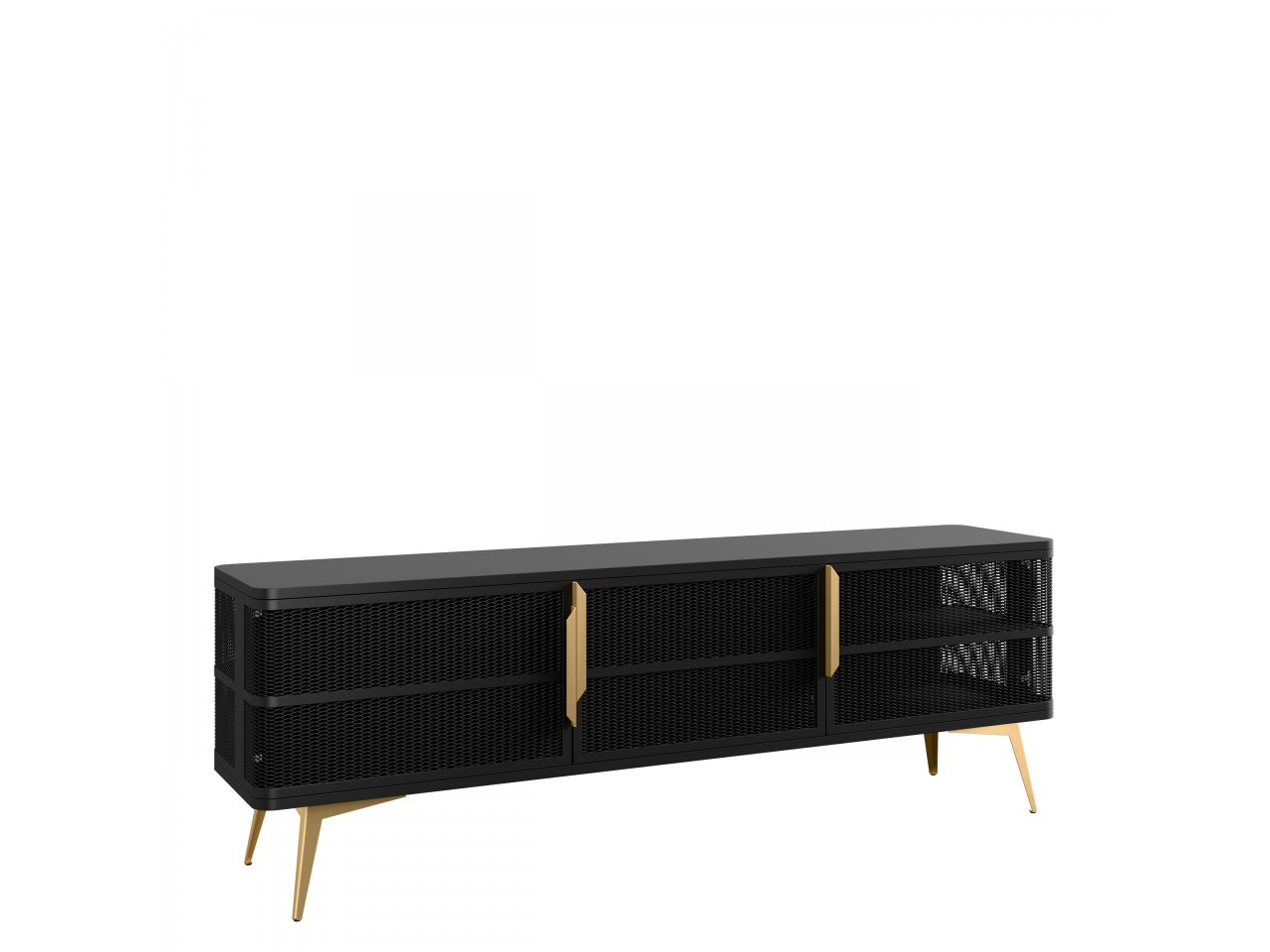 Moderná TV skrinka Bezor spája funkčnosť s dekoratívnym dizajnom. Prepracované čelné strany a výrazné dekoratívne úchytky robia zo skrinky nielen pozadie pre televízor, ale plnohodnotný prvok dizajnu obývacej izby. Vizuálne ľahká konštrukcia priťahuje pozornosť a dodáva interiéru sofistikovaný charakter.