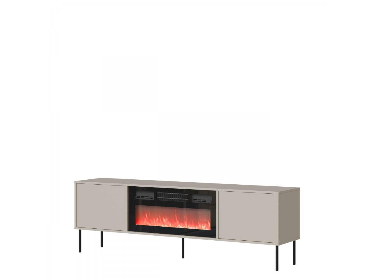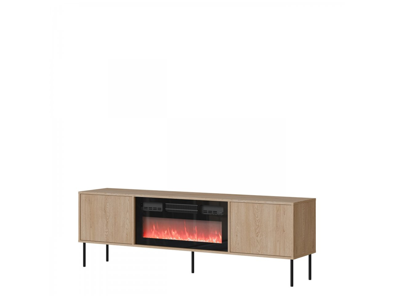 Doprajte si výnimočnú atmosféru vo vašej obývačke. TV skrinka Tugba 180 EF 2D s krbom je jedinečnou kombináciou funkčnosti a útulnej atmosféry. Tento model nemá žiadne úchytky a systém PUSH TO OPEN zaisťuje pohodlie a estetickú jednotnosť čiel. Štíhle čierne kovové nohy dodávajú skrinke ľahký a elegantný charakter.