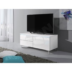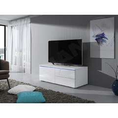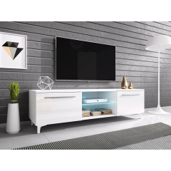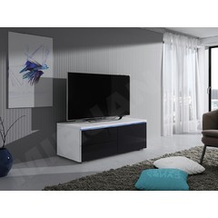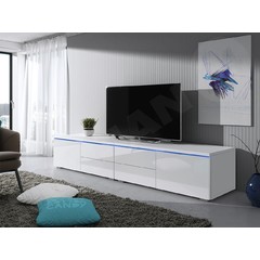 Ak ste fanúšikom filmov, hier alebo hudby a máte veľa televíznych zariadení, konzolí alebo set-top boxov, určite potrebujete priestranný TV stolík. Kusom nábytku, ktorý dokonale spĺňa všetky tieto potreby, je TV stolík Cleo XII P - je kombináciou širokej stolovej dosky, skriniek a police. Bol vyrobený v modernom štýle - má lesklé dvierka a farby na výber. Má tiež dizajnové modré LED osvetlenie, ktoré mu dodáva charakter. TV skrinka je vybavená systémom otvárania "push to open", ktorý spočíva v ľahkom stlačení dvierok - skrinka je bez úchytiek.