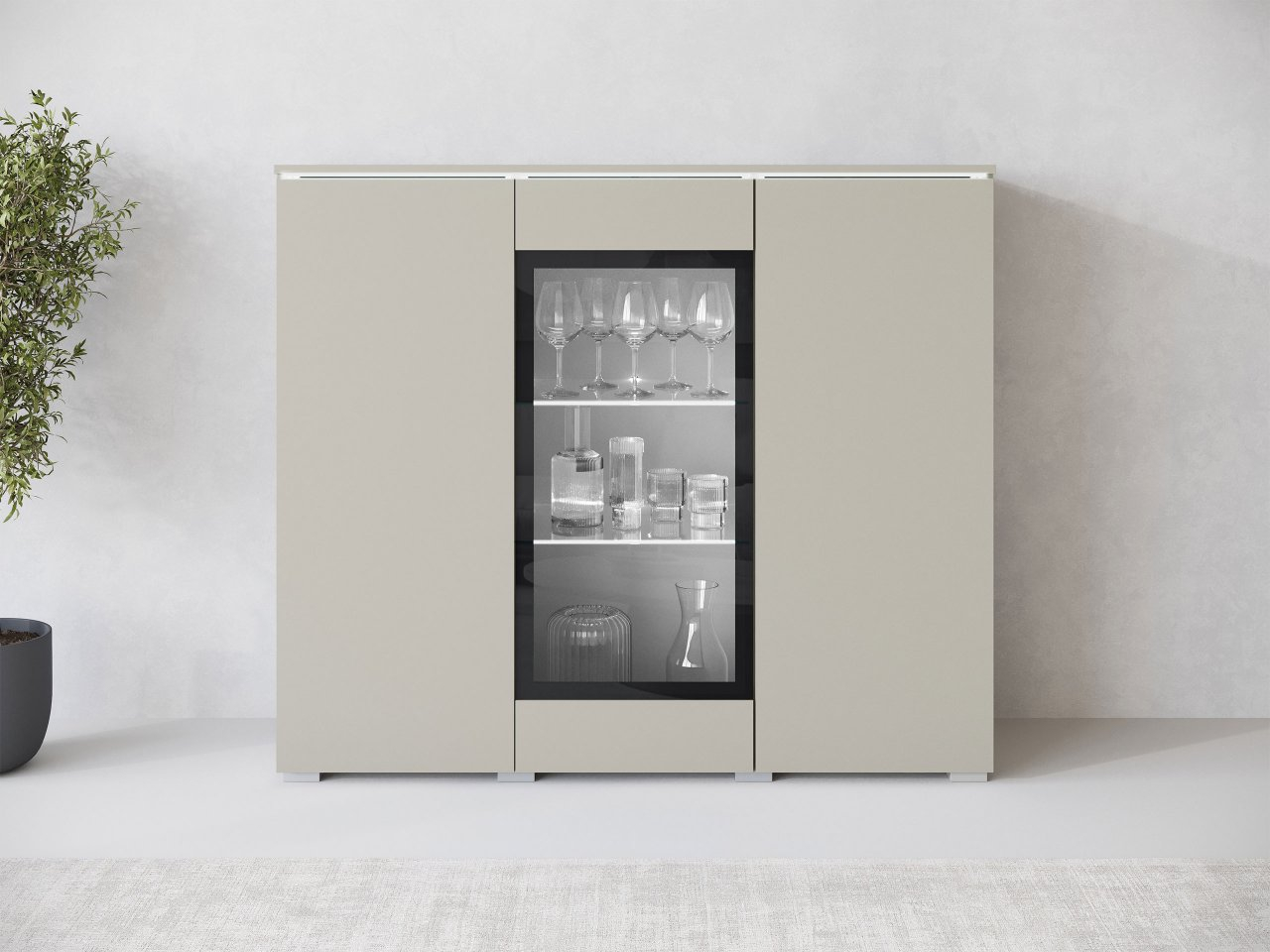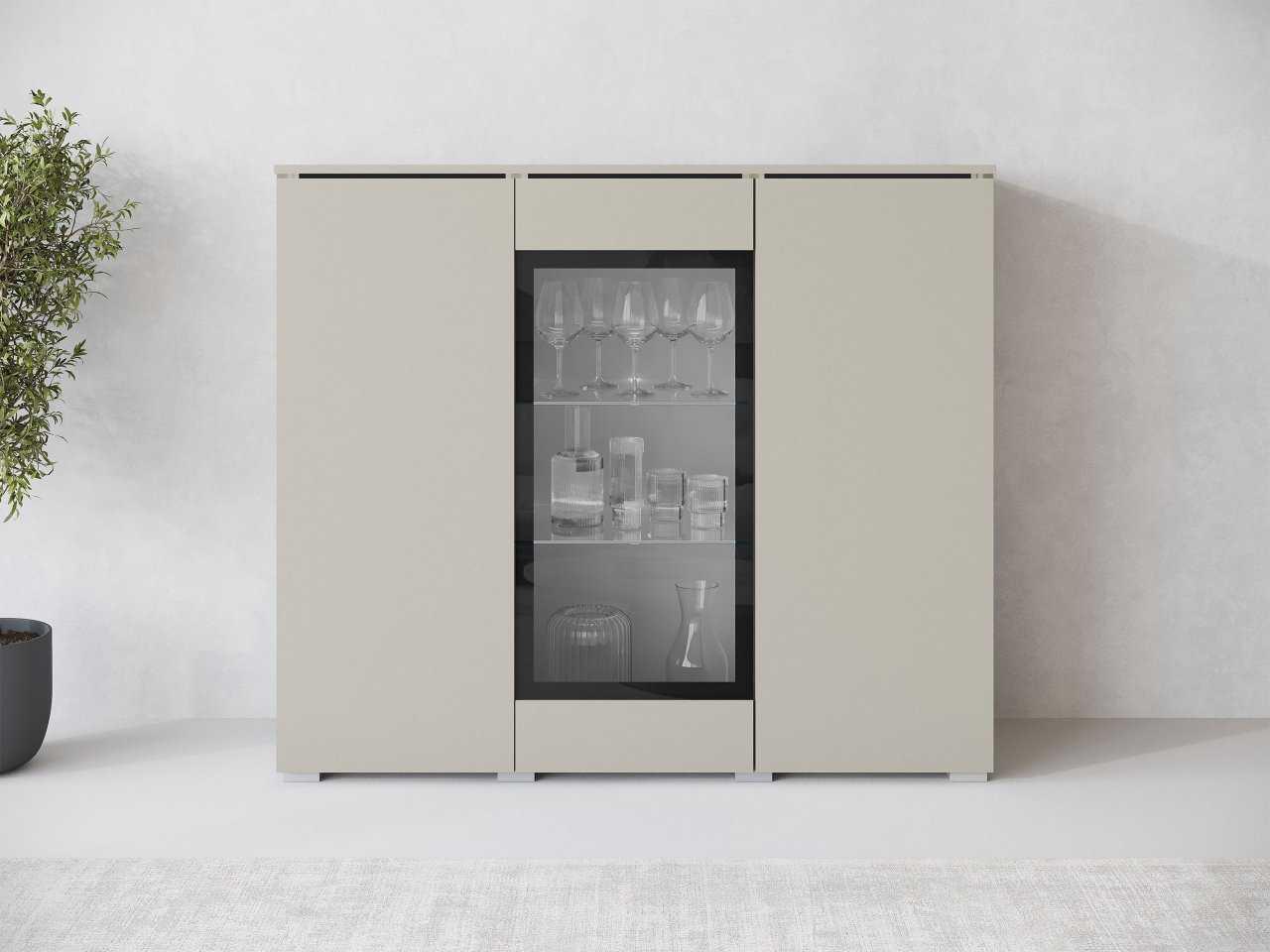 Komoda s vitrínou ponúka premyslený dizajn. Uzavreté úložné priestory vám umožnia uložiť potrebné veci vo vašom obytnom priestore. Na druhej strane presklená vitrína pôsobivo vystaví elegantné sklo, suveníry alebo dekorácie a dodá interiéru prestížny nádych.