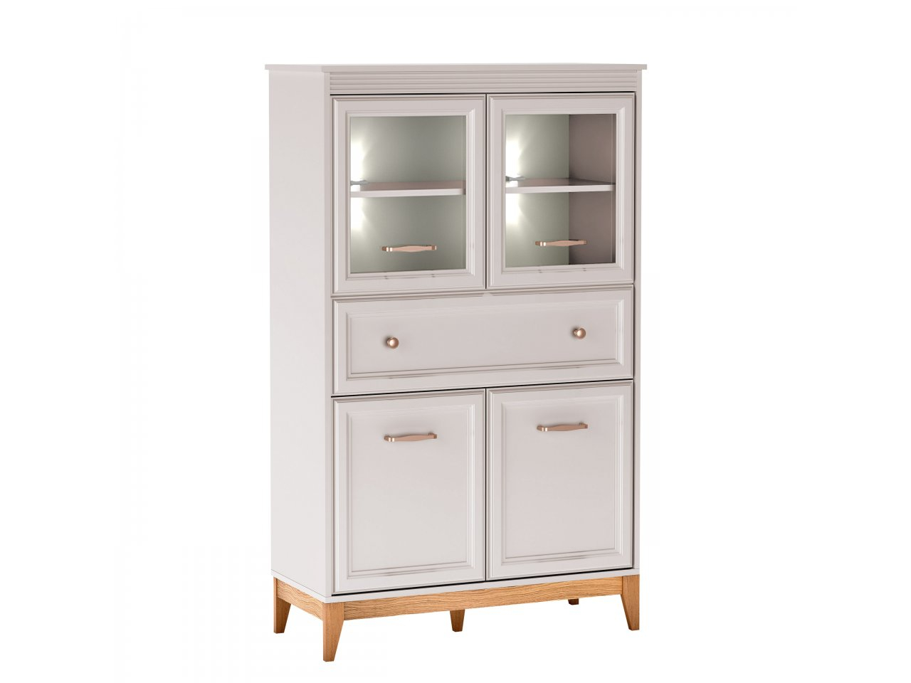 Presklenie je vyrobené z tvrdeného, číreho skla. Voliteľné LED osvetlenie, dostupné za príplatok, môže ešte viac vylepšiť interiér vitríny. Tento model je ideálny do obývacích izieb a jedální.