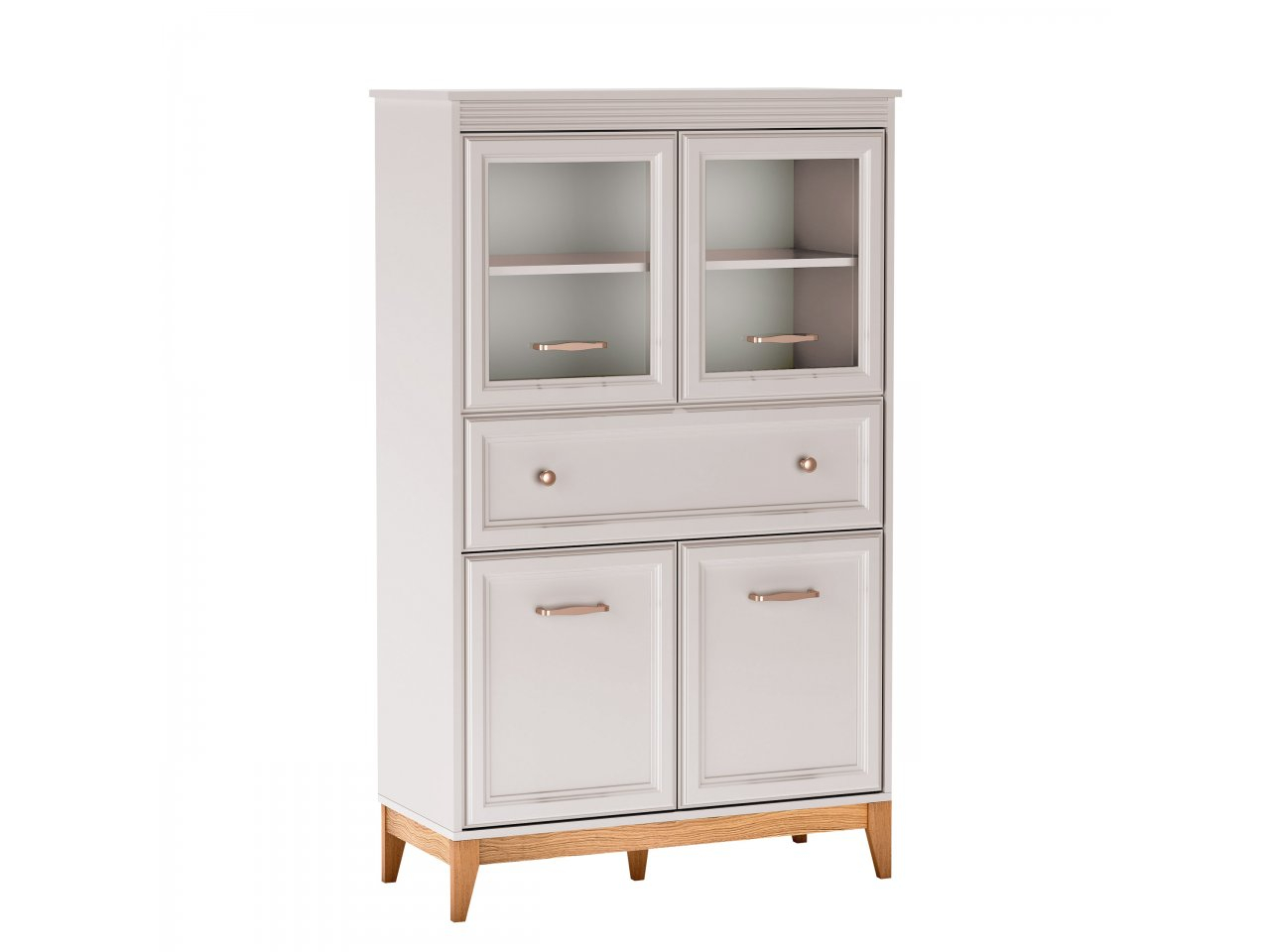 Zdôraznite charakter svojej obývačky s vitrínou Stebin SE05. Jej ľahká forma spočíva na drevených nohách, ktoré konštrukcii dodávajú stabilitu a teplý, prirodzený vzhľad. Čelá sú zdobené kovovými úchytkami v zlato-medenom odtieni, ktoré celému kusu dodávajú jemné čaro.