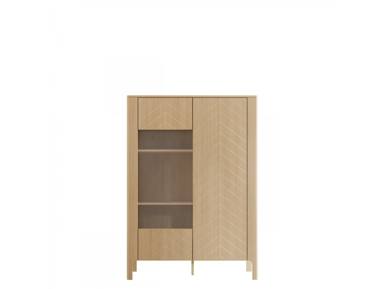 Skvelým spôsobom, ako zariadiť elegantný interiér, je vybaviť ho nízkou vitrínou Malony ML03. Neutrálna farebná schéma tohto kusu nábytku dopĺňa mnoho interiérových štýlov. Vďaka ozdobnému vzoru rybej kosti na predných stranách dodáva vitrína interiéru charakter a stáva sa súčasťou jeho dizajnu.